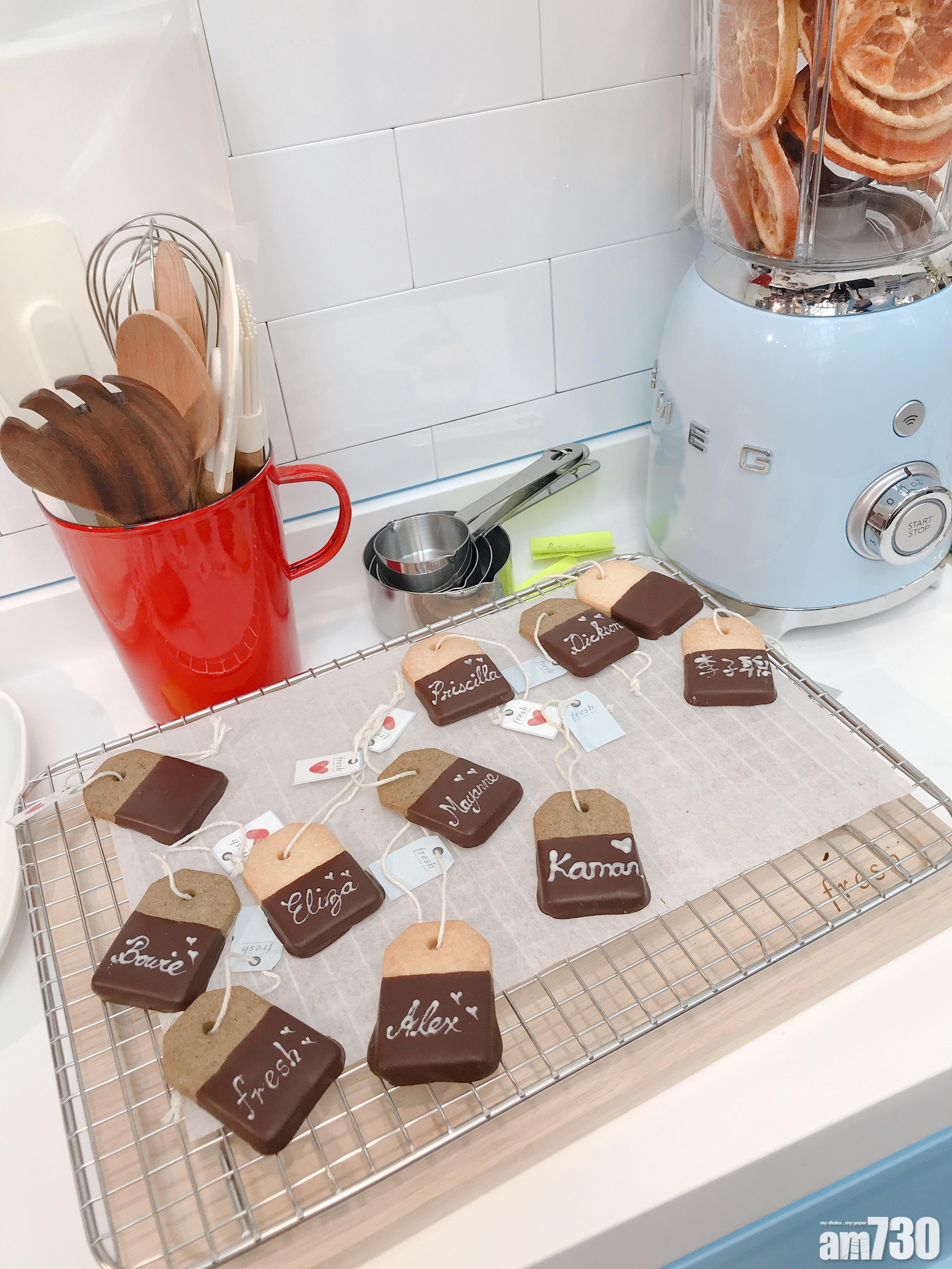 駐場甜點師特別製作Fresh Love Tag 形狀曲奇,即席用糖霜寫上客人名字。