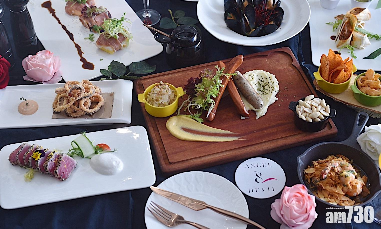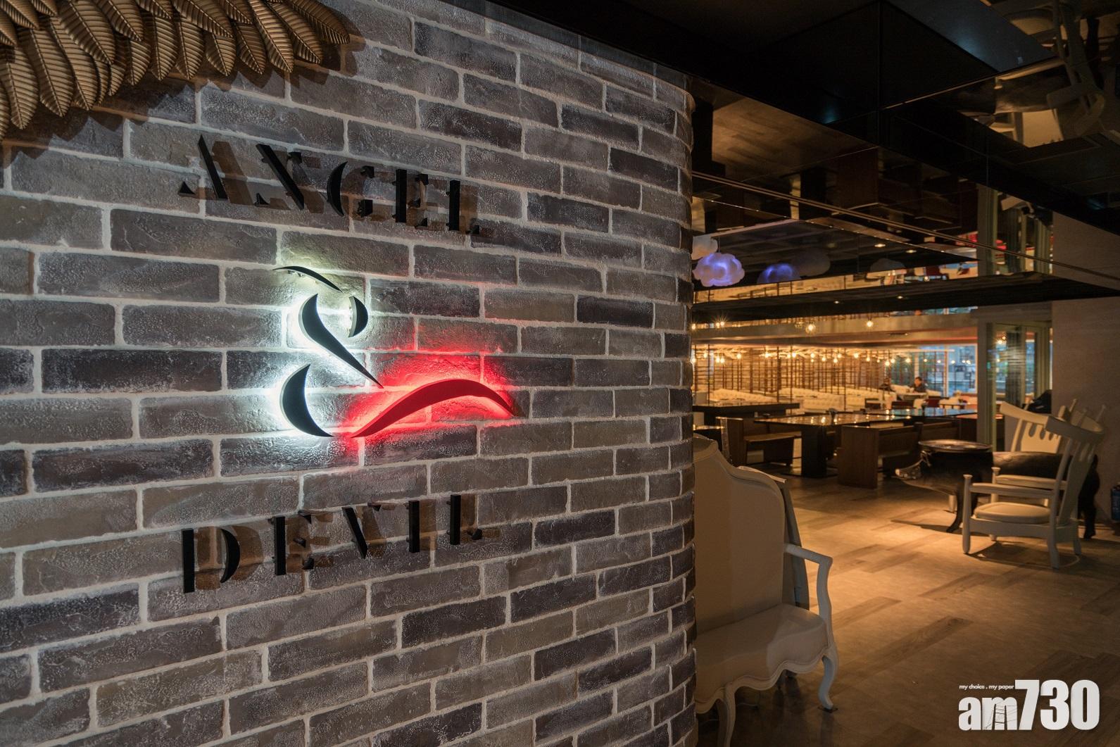 Angel & Devil為觀塘時尚地標Club East洞天的理想聚腳點,同時結合dinning及酒吧元素,裝潢輕鬆而充滿玩味。其調酒師最近以紐約時裝品牌John Varvatos的熱賣香水Artisan系列調配出一系列雞尾酒,把當中的柑橘元素盡情發揮,而凡惠顧‘Your Own Artisan’系列雞尾酒一杯,便可以半價享用菜單上多款精緻小吃,主打小吃包括香脆扭扭薯條(半價$24)、香辣墨西哥豬肉卷(半價$34)、白酒煮藍青口(半價HK$39)及輕煎吞拿魚配日式芥辣泡沫(半價$44)等。