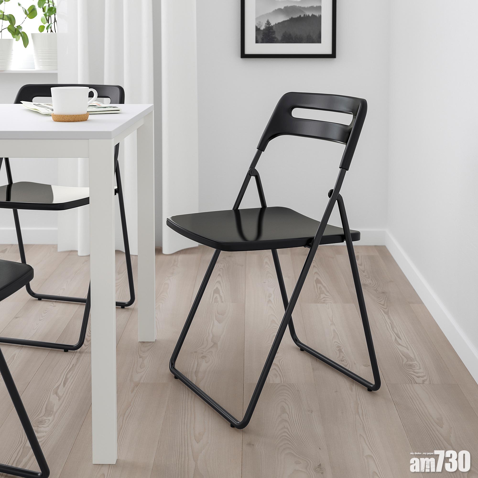 香港家庭普遍都備有摺椅,除方便宴客外,亦可節省收納空間。而GUNDE摺椅的椅背就備有手抽,方便移動或掛牆擺放,可惜這款摺椅的質地較硬,久坐會不舒服。因此建議可轉用NISSE系列的摺椅,其椅背及座墊設計,可令人坐得更舒適。若果還是選擇購買較便宜的GUNDE摺椅 ,可以配備一個坐墊,以減輕不適的感覺。