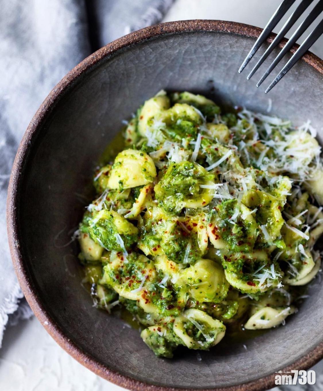 不少人都會用西蘭花作減肥用的食材,除了可以白灼或炒西蘭花外,把它製作成意粉醬亦十分合適,而雞髀菇切成塊狀後亦能增加意粉的口感。如果想吃肉的話,更可以把雞胸肉切粒加進意粉中。
