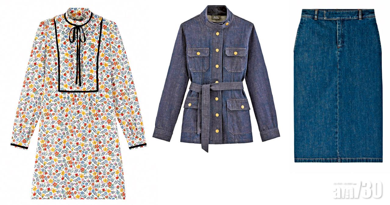 樸素、低調、舒適、有格,一直是A.P.C.多年堅持,所有設計巧思全藏於細節,像今季以法式浪漫感覺的花卉圖案的連身裙,就綴以飾有絲絨細節;還有充滿七十年代感覺的束腰shirt dress,就用上嬌美的紅色來做主調,來帶出現代感覺;還有品牌著名的單品,如將闊腳牛仔褲拆解再造成pencil skirt,還有未經洗水的軍裝denim jacket,都能著出法式少女的隨性時尚造型。