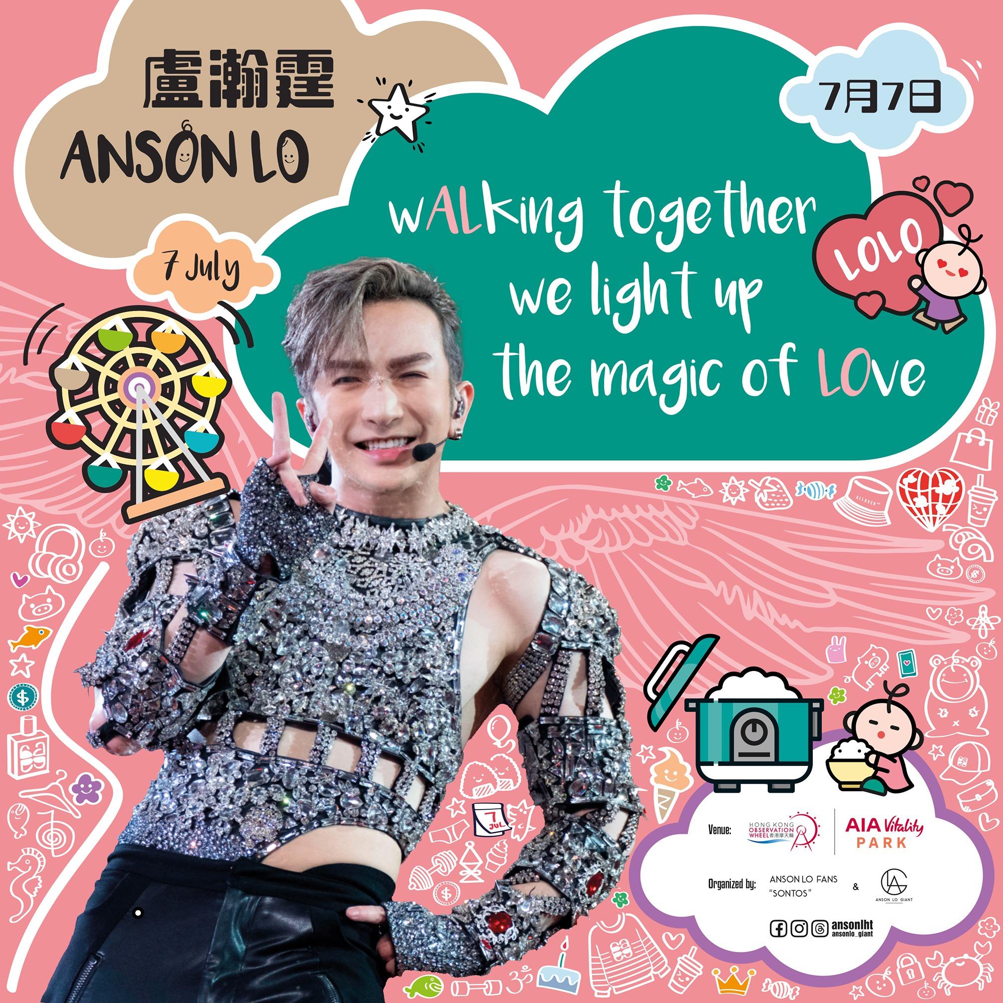 教主Anson Lo盧瀚霆 7月7日生日,Little Giants(Anson Lo’s fanpage IG: @ansonlo_giant)與一眾神徒藉著教主生日,在香港摩天輪及AIA Vitality公園舉辦應援活動。不僅於7月7日邀請全港市民免費乘坐香港摩天輪,更首次送贈近4,000張指定日子門票予8個慈善團體,讓受惠人士與其家屬,還有義工們共聚「天輪」。