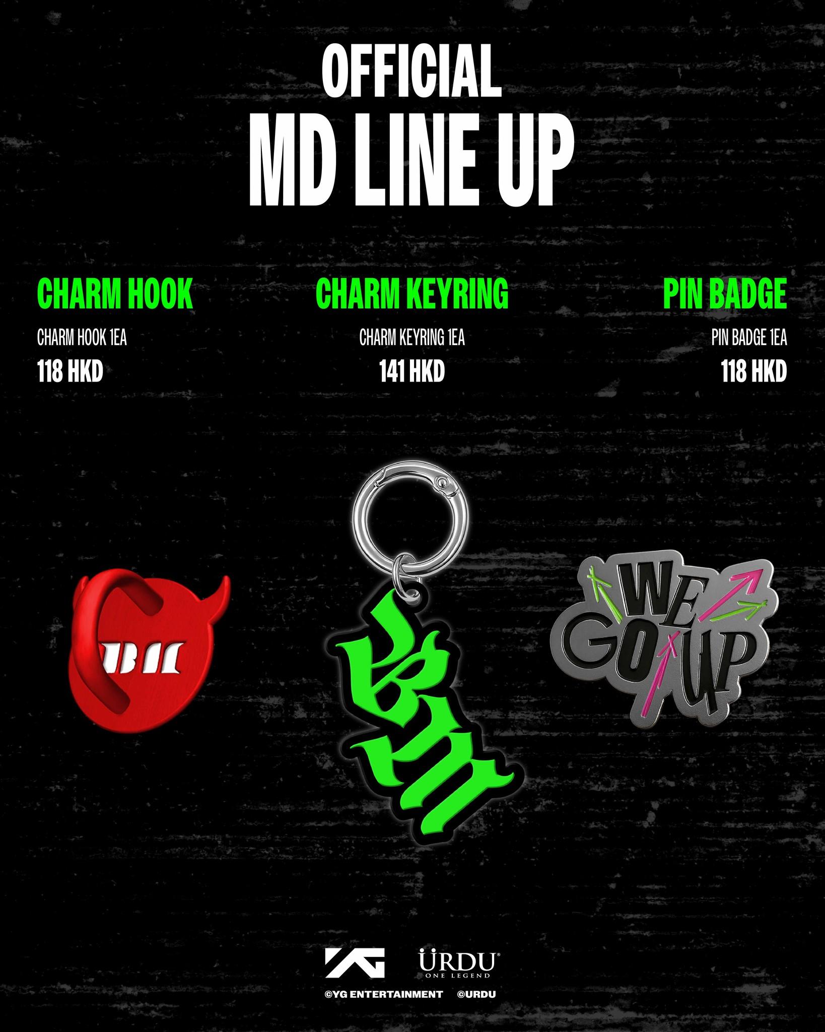 香港站 POP UP STORE 的官方周邊將分兩階段推出。首階段以《WE GO UP》為主題,發售包括迷你專輯(6 個版本)、即影即有相片套裝、小卡卡套、人型立牌、毛毛鎖匙扣及襟章等;亦有背心球衣、上衣、連帽外套、鴨舌帽及收納袋等服飾與實用品。第二階段則會公開「LOVE MONSTERS FAN CONCERT」官方周邊,相關詳情將稍後公布。