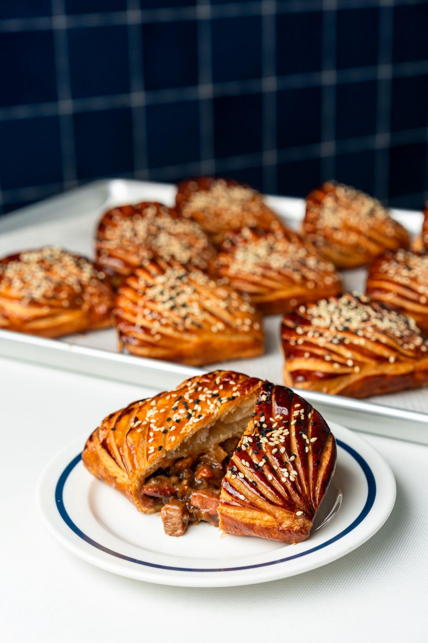 另一款同是中西合璧的新品麻辣蔥油丹麥卷,創作靈感源自上海蔥油餅,將自家的丹麥卷麵團,以牛油反覆摺疊後,加入蔥花、四川花椒和辣椒,既有蔥香亦有銷魂麻香。出爐後輕輕塗上一層甜鹹平衡的醬油,添上光澤,令味道更顯和諧。
