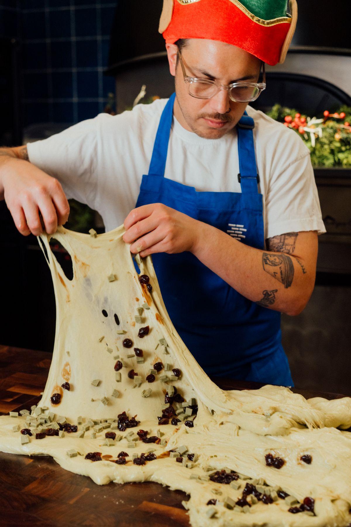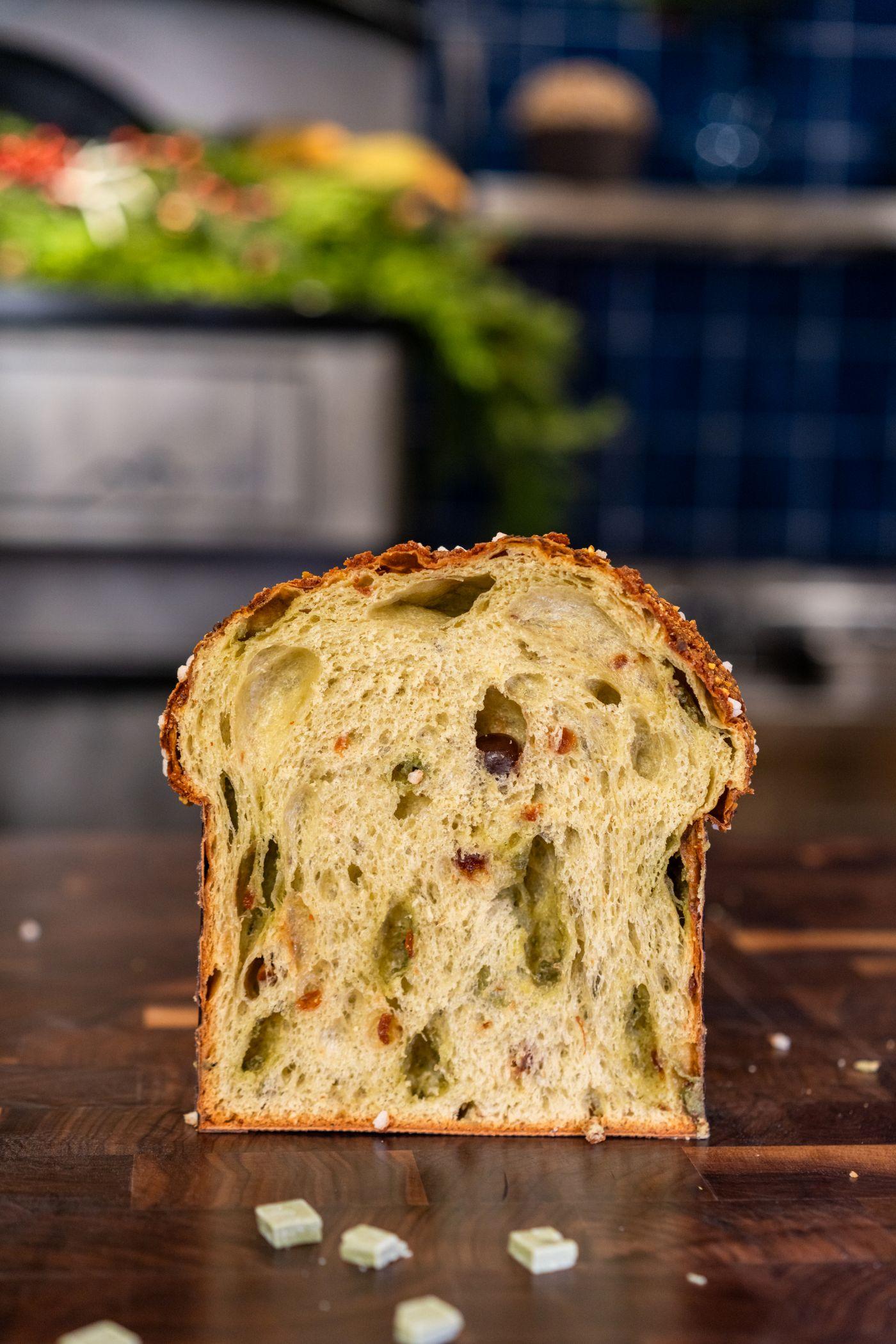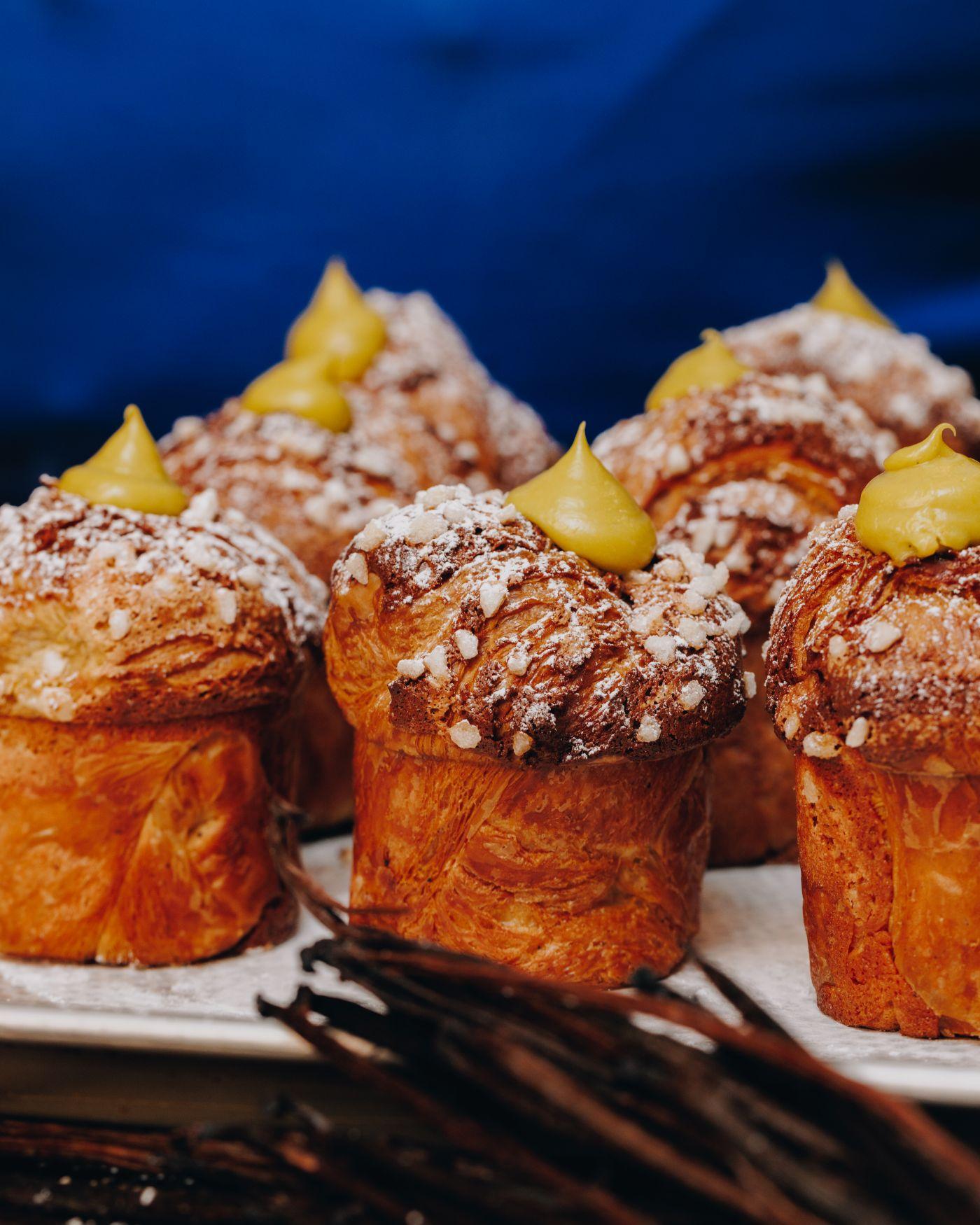 創辦人Grégoire Michaud誠邀合作的Jonny Pisanelli,曾多次榮獲澳洲聖誕麵包獎項,最近就憑自創檸檬餡牛角酥結合意大利傳統聖誕節麵包,在意大利聖誕麵包世界錦標賽中贏得創新Panettone組金獎。他今次為Bakehouse精心研發兩款獨家、家庭式份量的酸種意大利聖誕麵包,一款經典口味加入黑葡萄乾和糖漬柑橘;另一款開心果酒漬車厘子口味。棄用大量生產麵包的商業酵母,而是採用野生酵母自然慢慢發酵,由搓揉麵糰、靜置、發酵、倒吊冷卻以至烘製的過程,需經歷至場48小時,期間嚴格監控溫度與時間,烘焗出高聳圓頂、如雲朵般的質地,產生垂直洞穴的狹窄氣孔。