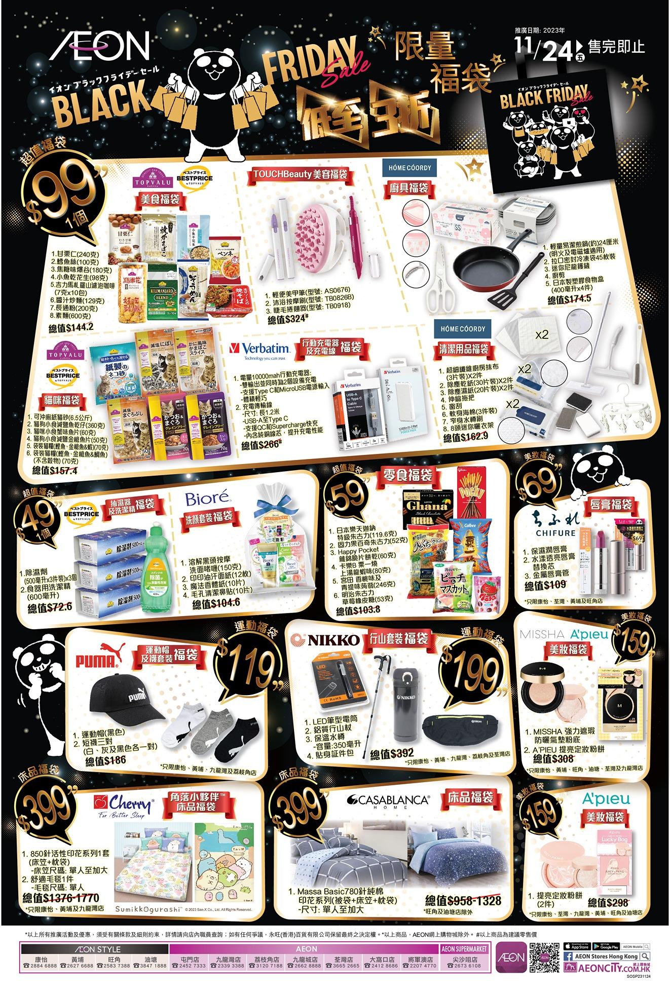 Black Friday優惠|AEON Black Friday Sale超值福袋低至3折$99起 部分貨品低至半價限時放題