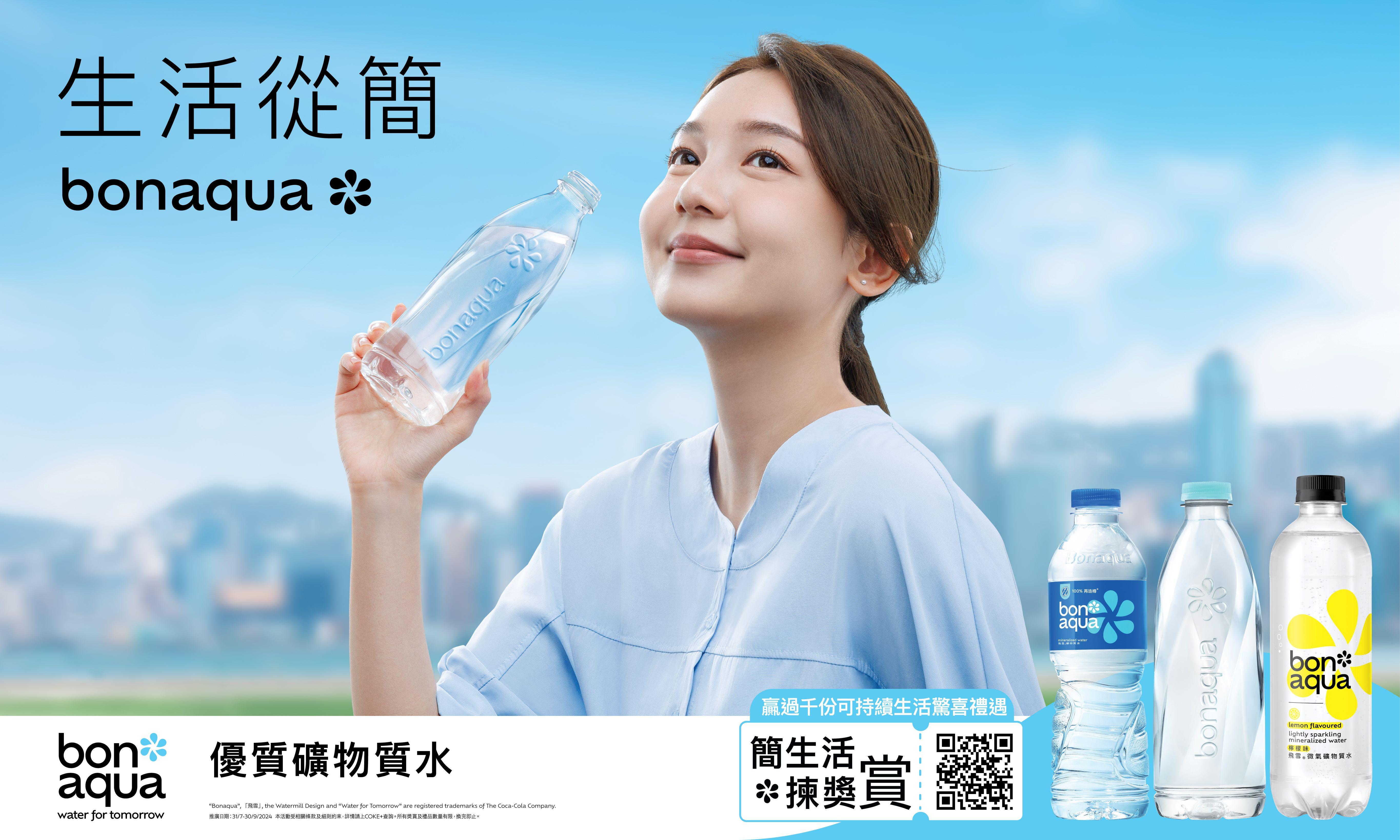 即日起至9月30日,於指定商戶購買任何bonaqua礦物質水產品滿$20或以上,登入或開立COKE+會員帳戶並上傳收據,即可參與「簡生活」大抽獎以及自動參與儲分計劃。