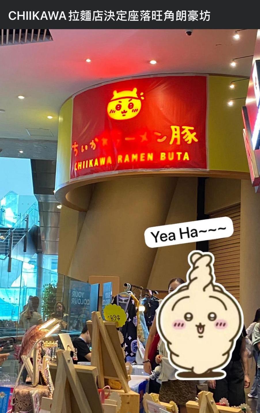 Chiikawa拉麵|日本超人氣角色Chiikawa(吉伊卡哇),早前宣布將於8月在港開設「郎」拉麵店,近日有不少網民分享,在旺角朗豪坊見到「郎」拉麵店的招牌,雖然目前招牌均貼上紅色貼紙,不過已隱約見到主角「Chiikawa」的頭像,下面寫上「ちいかわラーメン豚」及「Chiikawa Ramen Buta」,令一眾粉絲相當期待,更有人笑言「係咪要叫改名「郎」豪坊?」,相信又將帶起新一波Chiikawa 經濟!