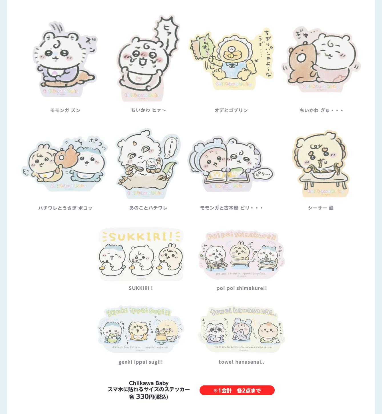 凡購買「Chiikawa Baby」系列商品,每筆交易可獲一張特典貼紙。