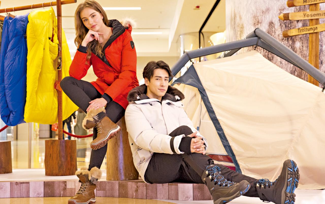 該店專售戶外裝備,野遊潮人必備的Columbia Black Label、加國星級羽絨品牌Nobis、加拿大國民雪靴Pajar、法國七彩防水褸始祖K-Way,以及深受日本型男愛戴的國寶級野遊潮牌Snow Peak服裝系列等,設計簡約實用,他們更特別邀請何猷啟女友Angelika Nikolaeva及有「混血宋承憲」之稱的Xavier Callicott演繹多套戶外裝備,輕鬆打造有型山系造型。