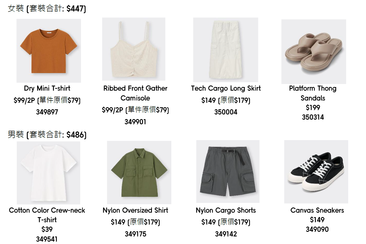 第一週夏日精選單品:男女裝上衣及下裝單品
