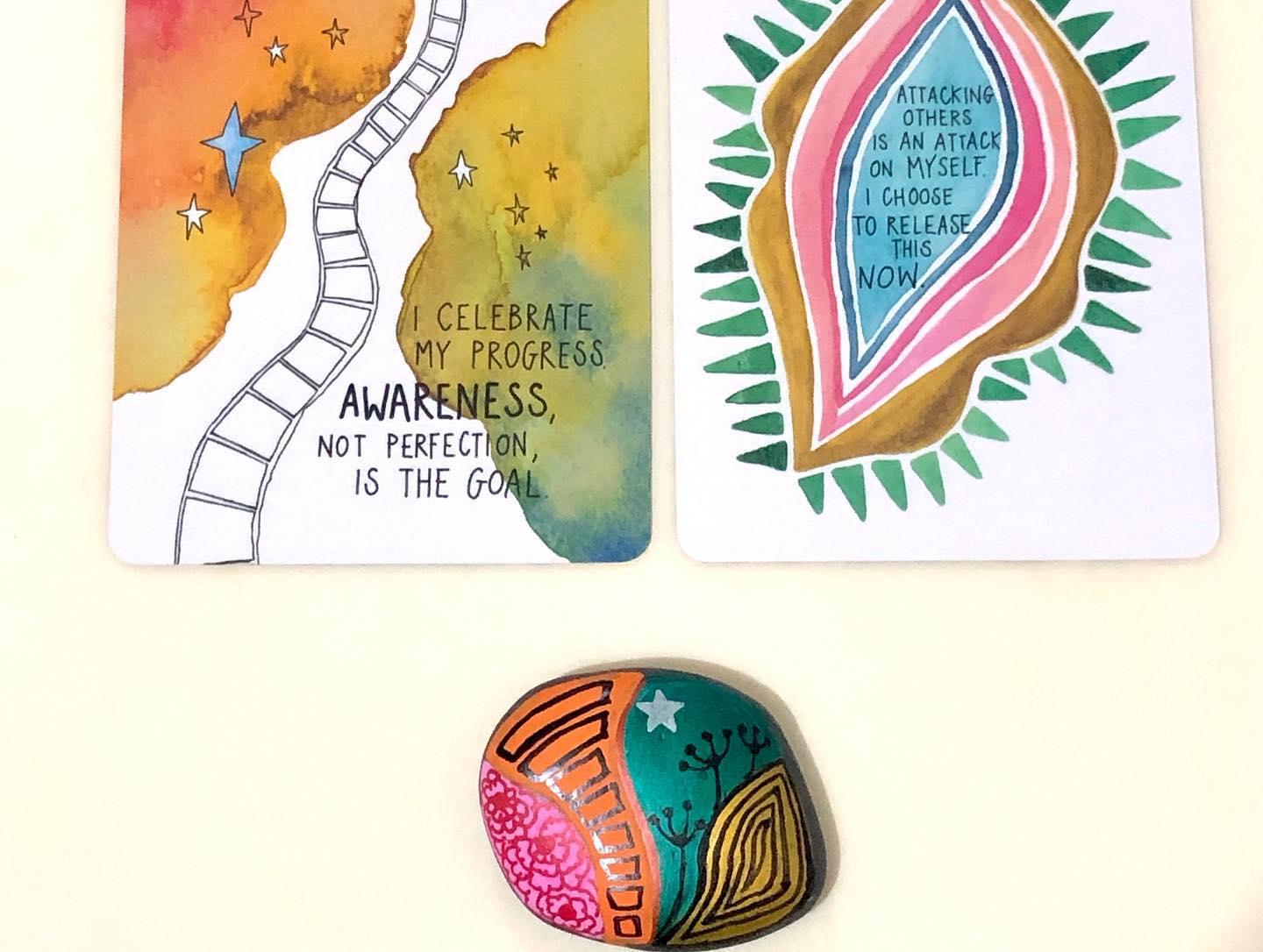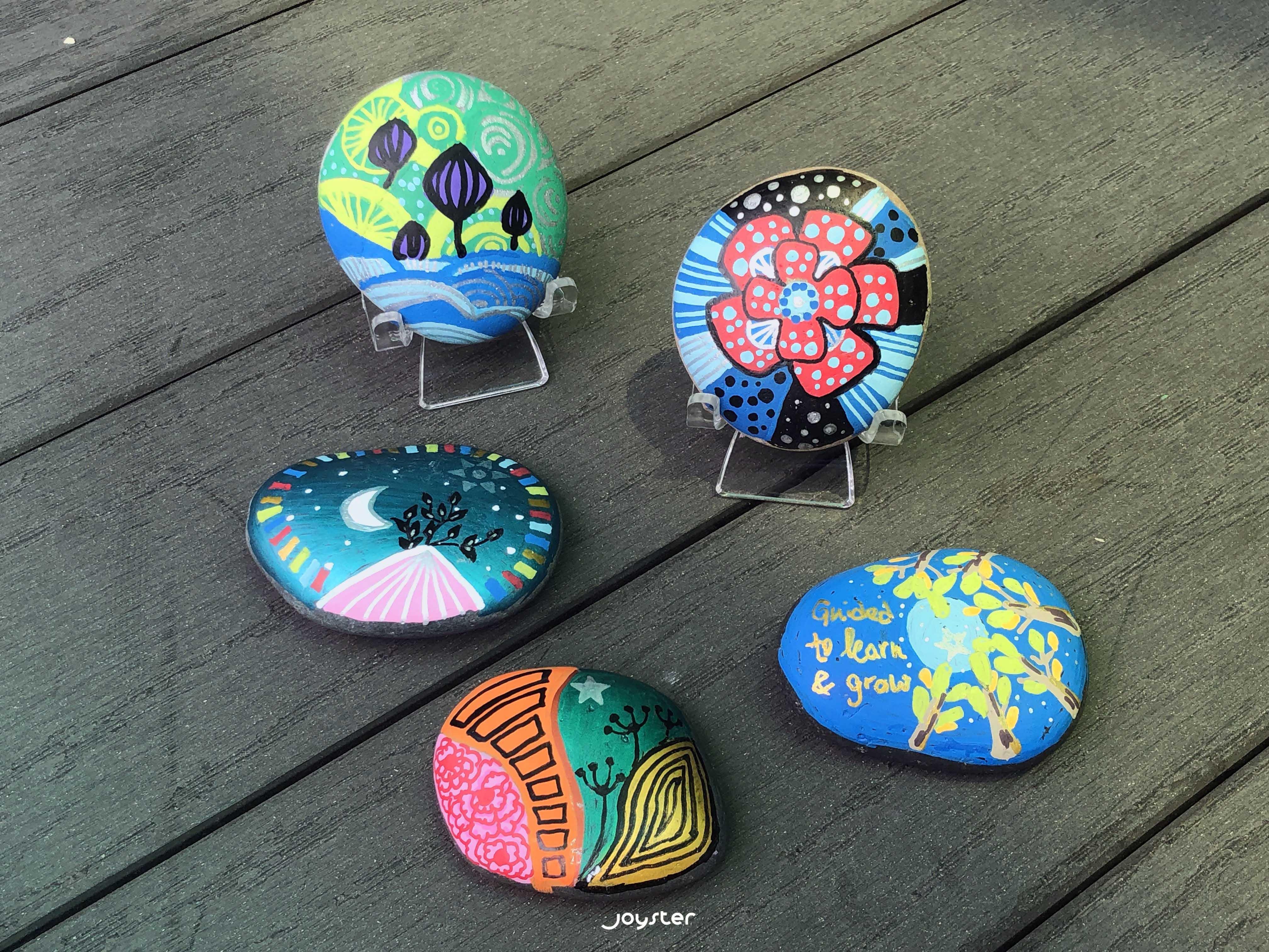 當心情不佳或者迷茫時,可利用能量卡、圖卡,引導心靈連結內在,聆聽內在聲音,接著繪畫心靈石頭畫,透過用藝術作表達,去體驗和探索個人內在感受,釋放思緒,將情緒轉化。而且又可以將石頭畫當心靈禮物送給自己或摯友。