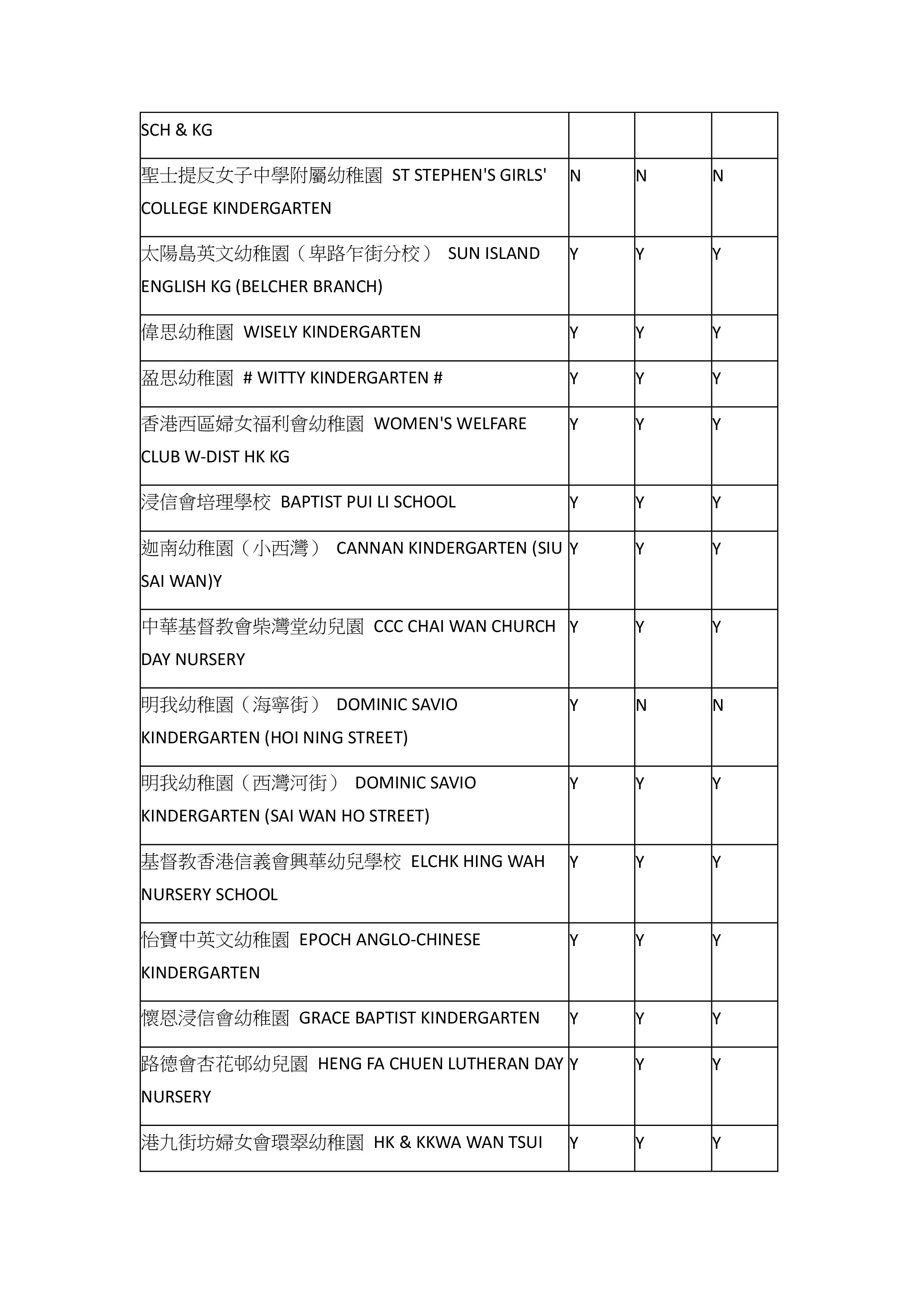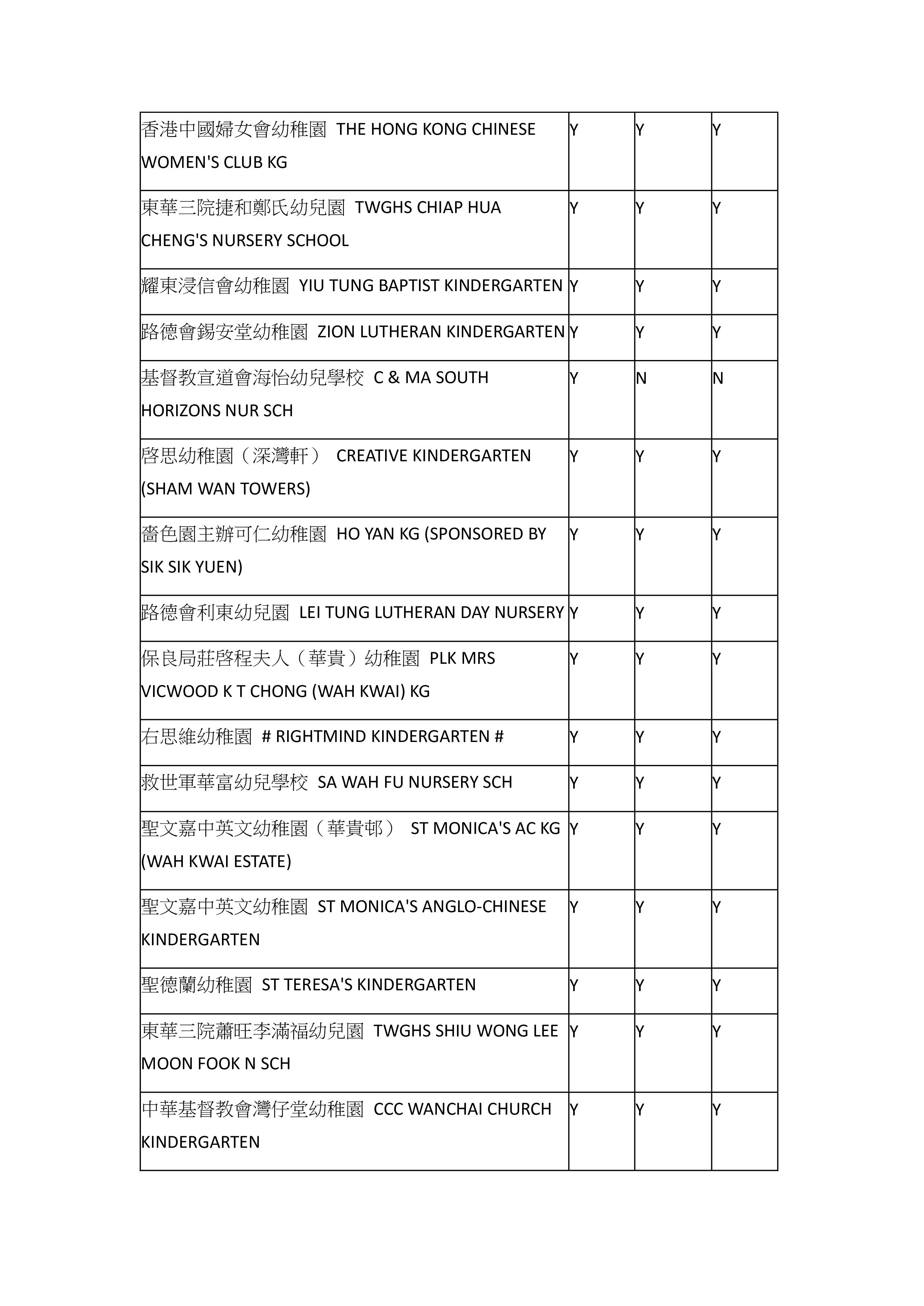 如學校名稱旁加上#號,即表示該校沒有參加幼稚園教育計劃。