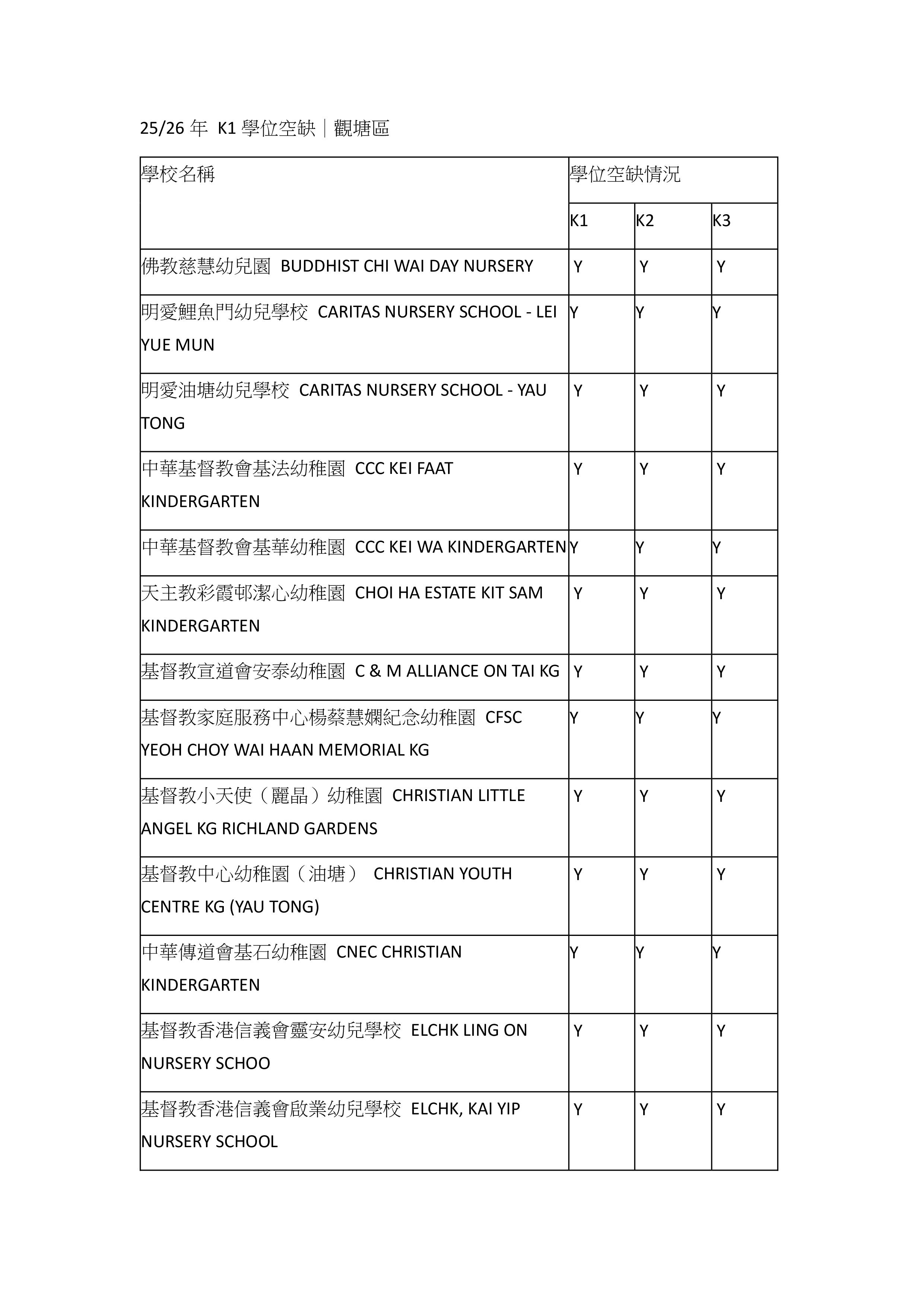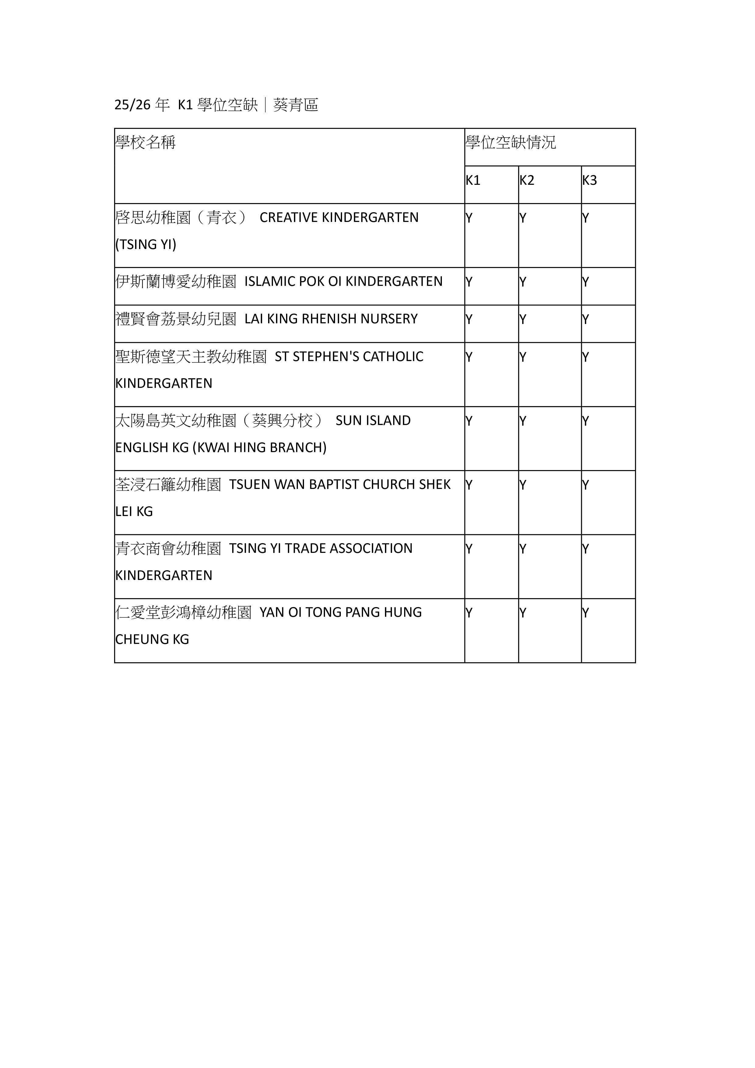 25/26年學位空缺幼稚園名單|729間幼稚園有學位空缺