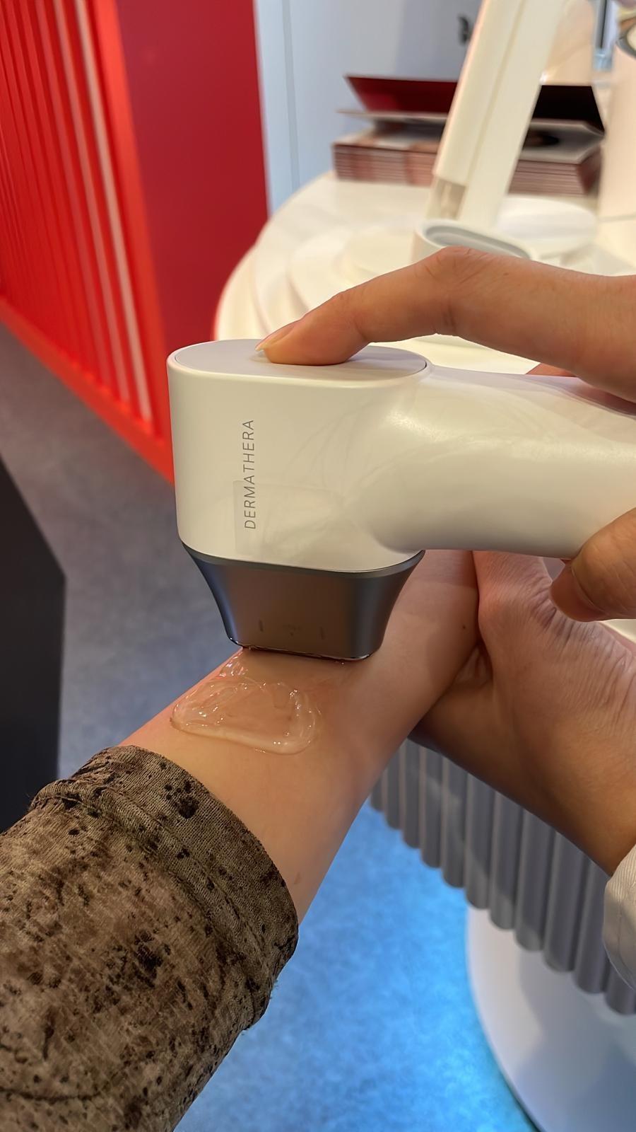 主打面部提拉的Dermathera HIFU美容儀,採用LG電子獨特的高能量聚焦超聲波(HIFU)技術,將能量準確均勻地照射到皮膚下方3毫米的區域,刺激膠原蛋白和彈性蛋白的生成,以改善皮膚的彈性和穩定性,並為容易下垂的額頭、眼睛、臉頰、下巴及頸部5個核心肌膚區域提供護理。