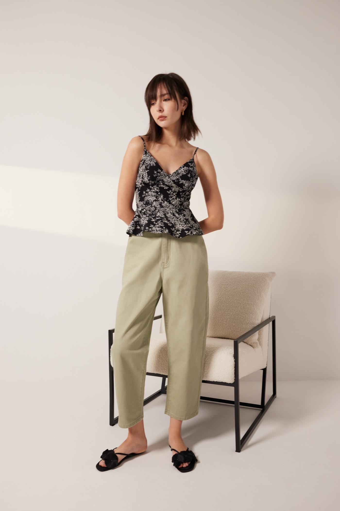 另一種風信子圖案的Padded Floral Peplum Camisole Top,背心採用荷葉邊剪裁設計,備有藍色和黑色選擇,展現甜美和性感兩種風格。單品更特設內置胸墊,展現身體曲線,配搭Staples系列的Denim Straight Leg Jeans或Willow Classic Tailored Shorts ,打造時尚造型。