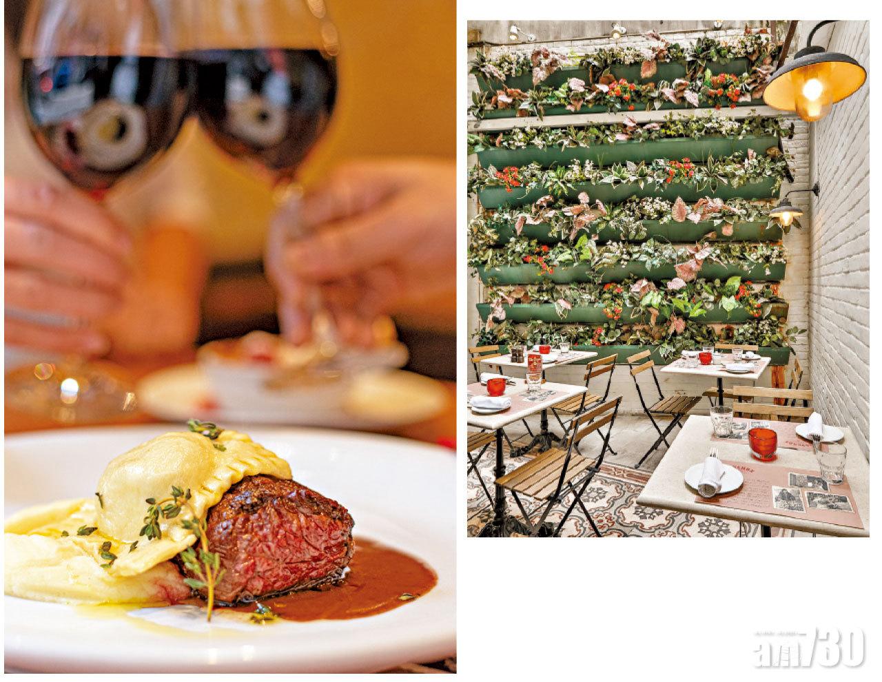 位於中環蘇豪的Bouchon,裝潢充滿巴黎風情,主打輕鬆優雅的法式菜式,2月14日情人節套餐將設3輪入座時段,分別為11時30分、下午1時30分及下午3時30分,先享受士多啤梨及奇異果意式奶凍作為開胃前點,隨後自選一款前菜,分別有煙熏三文魚、茴香及柚子沙律、西洋菜及苦白菜沙律配富士蘋果、Roquefort藍芝士、核桃及核桃醋等。主菜可任擇一款,有烤鯛魚配芥末、龍蒿醬、蘆筍及青豆;牛柳扒配菠菜及水牛芝士雲吞;或是煎鴨胸配蜜糖及糖漬葡萄乾。