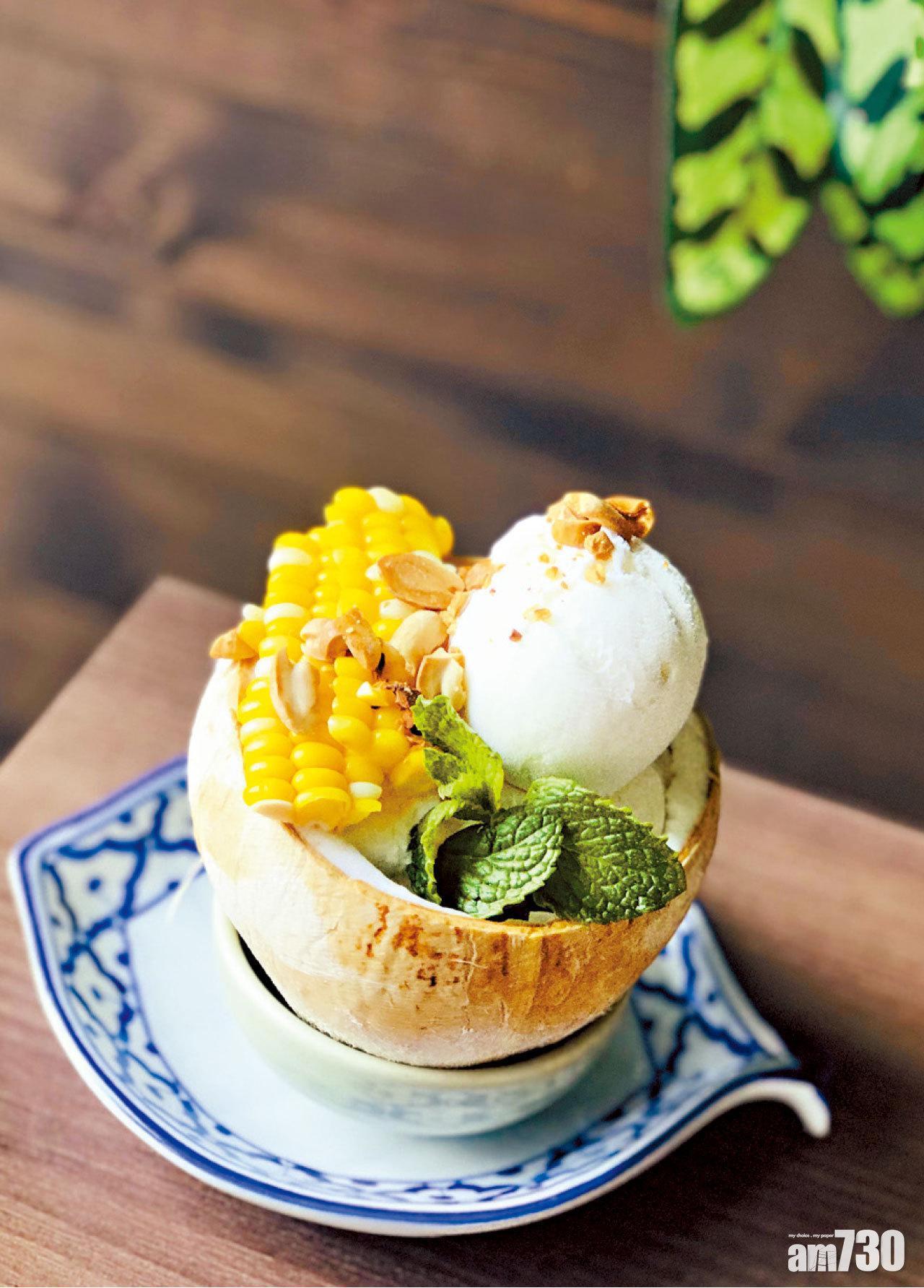 新店帶來椰皇粟米新地,小小椰皇載著大大個香濃椰子雪糕,配上椰皇肉、新鮮粟米、忌廉及烘香花生,椰子粉絲絕不能錯過!$48