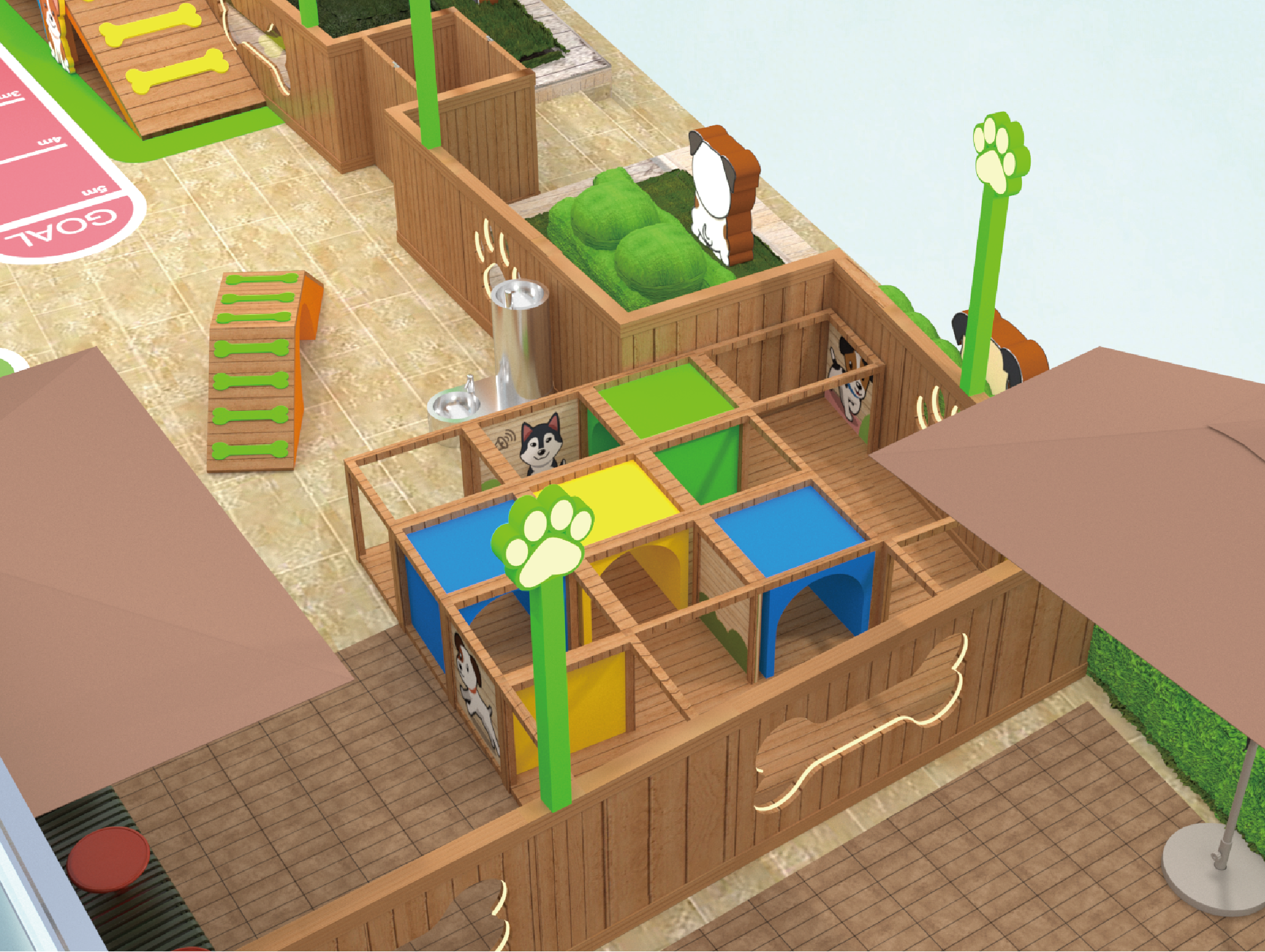 毛孩玩樂長廊專為中大型寵物打造,面積更超過4000呎,空間感十足!長廊長達100米,設有5大遊樂設施。當中包括經典「跳圈圈」及「跨圈圈」遊戲、「考考平衡」、「穿越大水管」及考驗主人和寵物默契的「繞著你走」。