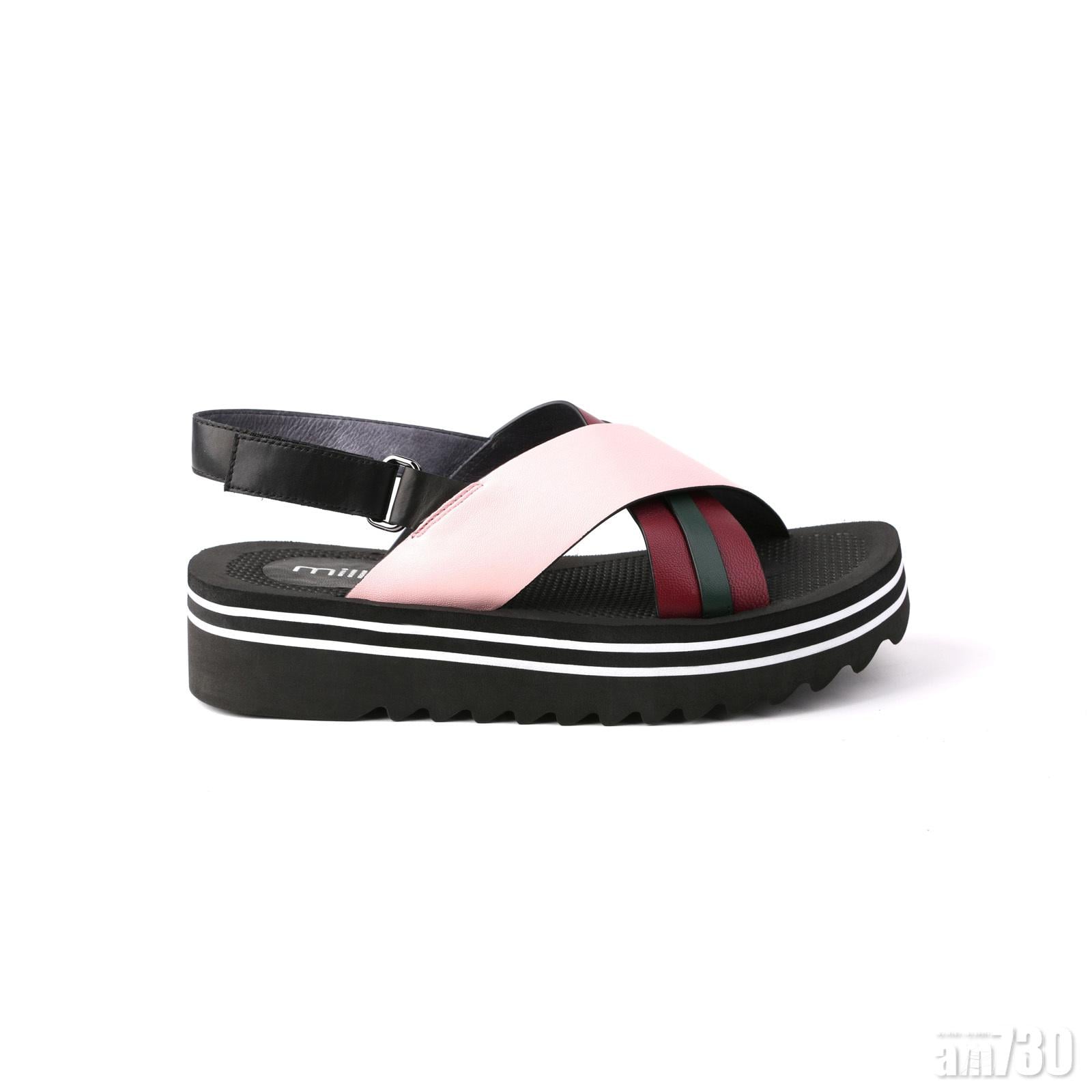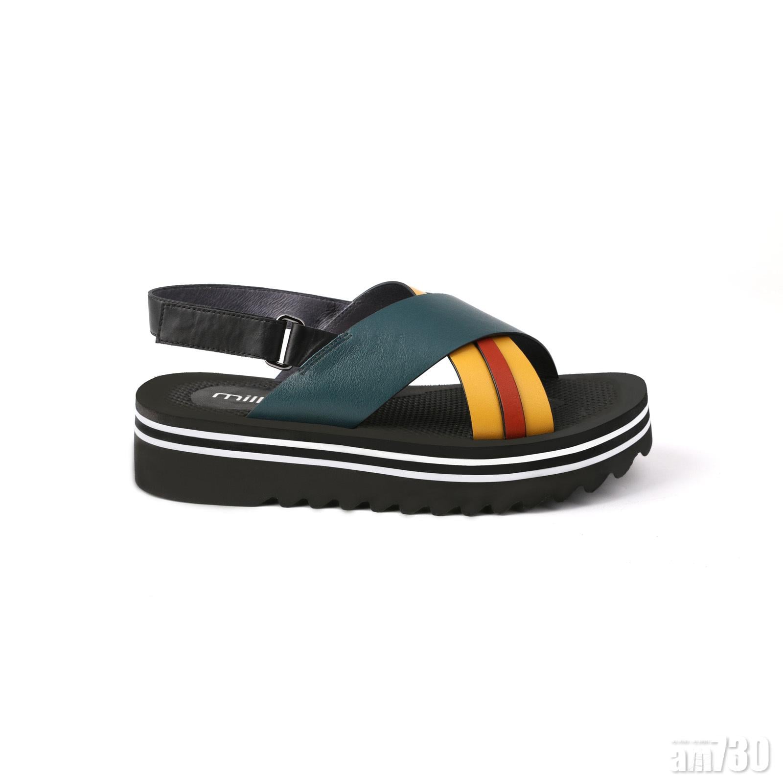 交叉帶拼色厚底軟牛皮涼鞋 $998