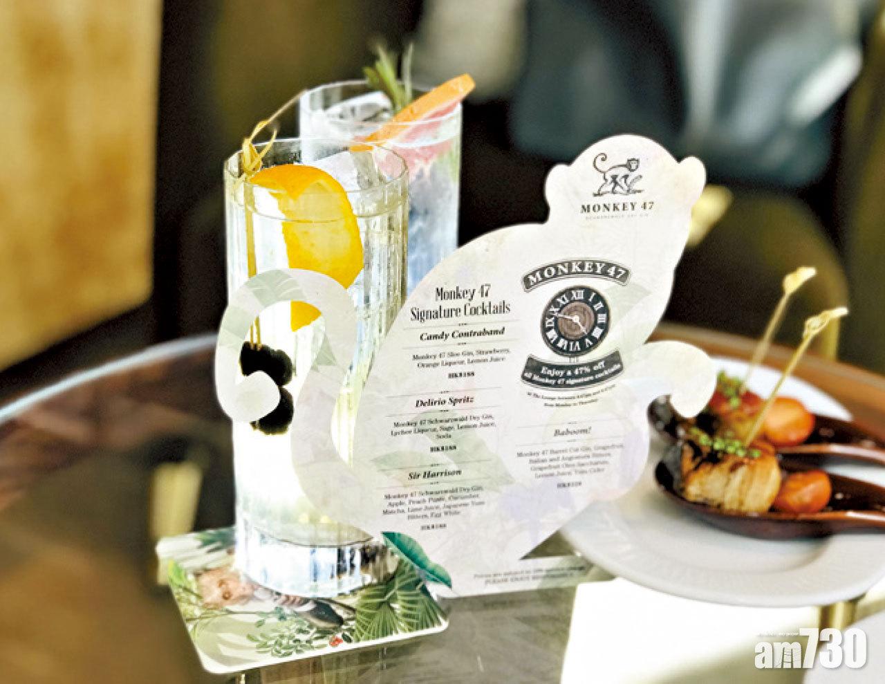 另外,酒店飲料部經理Sabrina Cantini Budden設計一系列特調雞尾酒,每款均以Monkey 47 Dry、Sloe或木桶陳釀Barrel Cut精心調配,凡周一至周四下午4時47分至傍晚6時47分期間,可於The Lounge享用「Monkey 47 Gin‘o Clock」歡樂時光優惠,惠顧任何Monkey 47特調雞尾酒,即享47%折扣(即53折);摩登日式料理Zoku Restaurant & Terrace更推出限定雞尾酒配對菜單,大廚由前菜至甜品共五道菜設計出與雞尾酒對味的精緻料理。