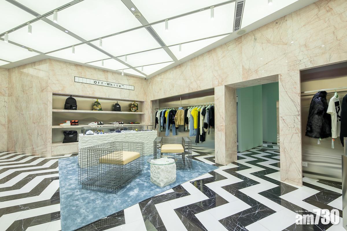 Off-White™ 全新專門店由品牌創辦人Virgil Abloh親自主理,以黑白相間的大理石地面配襯粉色大理石牆身,打造出全球首間Off-White™「Pink Marble 」主題的品牌專門店。