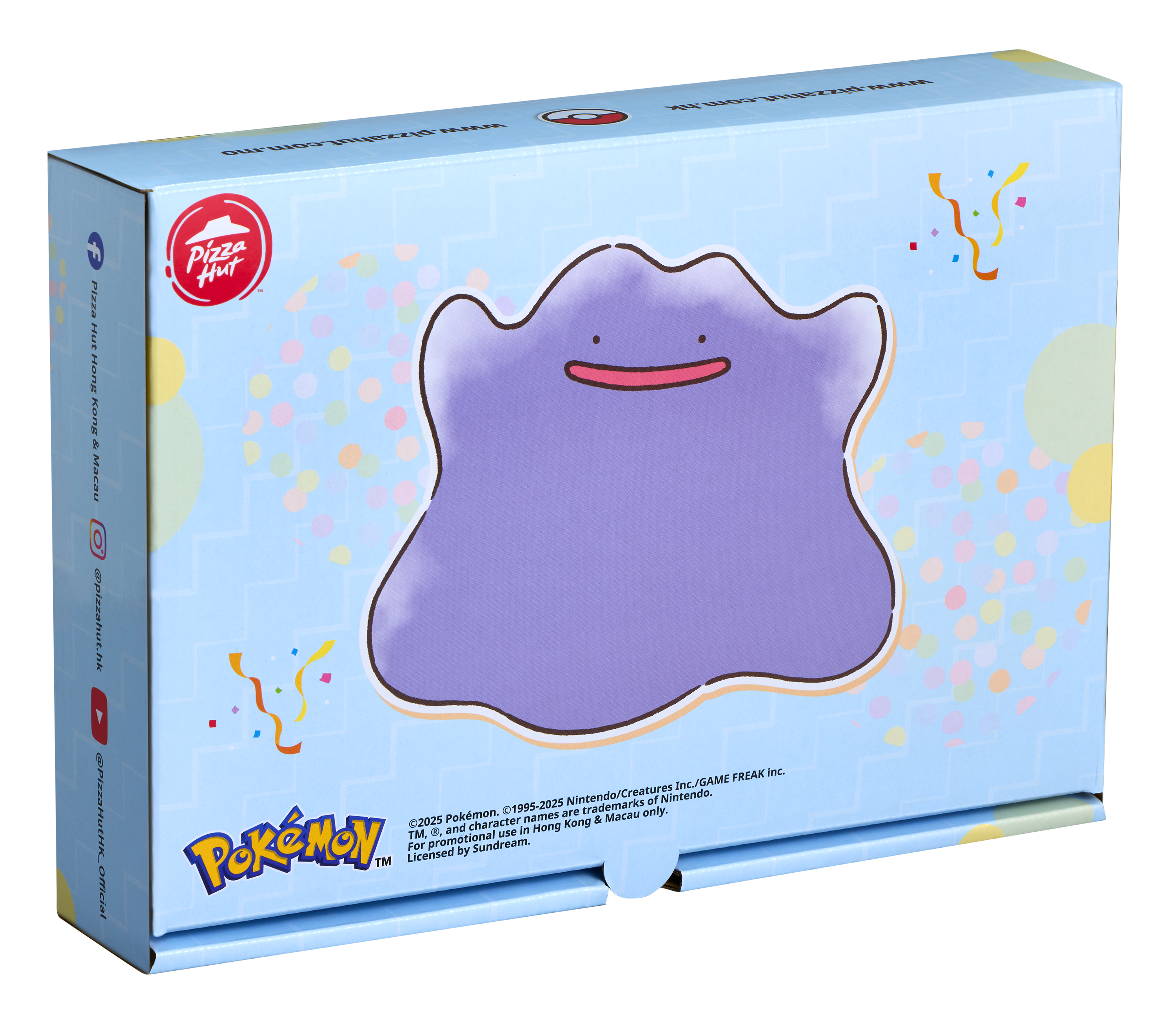 由11月27日起,Huts Rewards會員凡於香港及澳門全線 Pizza Hut 分店作任何消費(堂食、外賣自取及外送),即可以$59起加購一系列Pokémon 精品,包括毛絨卡套(Pikachu/卡比獸)、超輕摺疊袋 (Pikachu/小火龍)及百變怪暖手枕,每款設計均融入 Pokémon 元素,可愛又實用,精品數量有限,換完即止。
