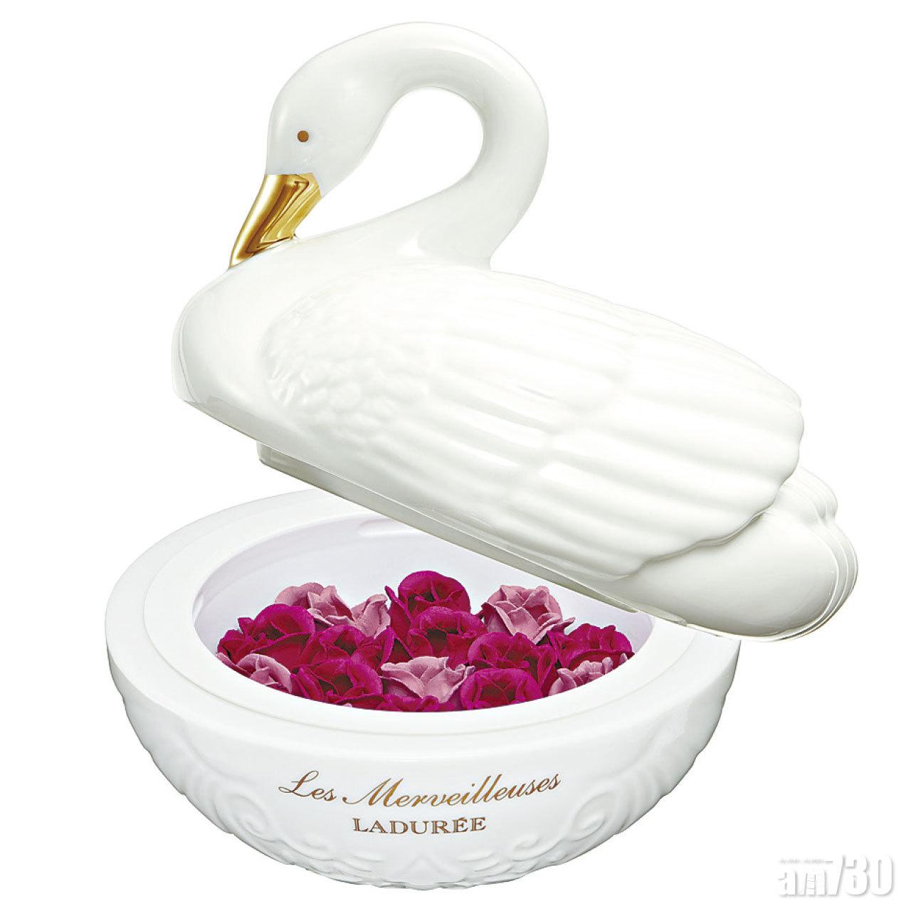 Cheek:年度限量白天鵝玫瑰花胭脂,混合了深和淺的玫瑰色調,只要輕輕一掃,就能呈現優雅的淡粉紫色調,色澤自然持久。