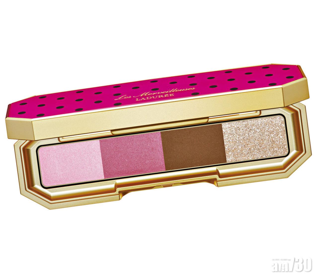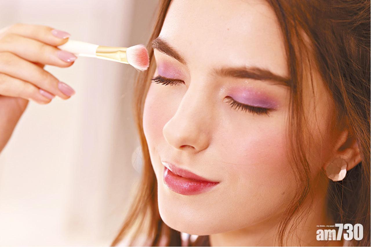 Eye:利用華麗眼影寶盒內的粉紅和紫色,掃出自然亮麗的漸層眼妝,眼線則以櫻桃啡色取代黑色眼線,描畫出浪漫典雅的妝感。