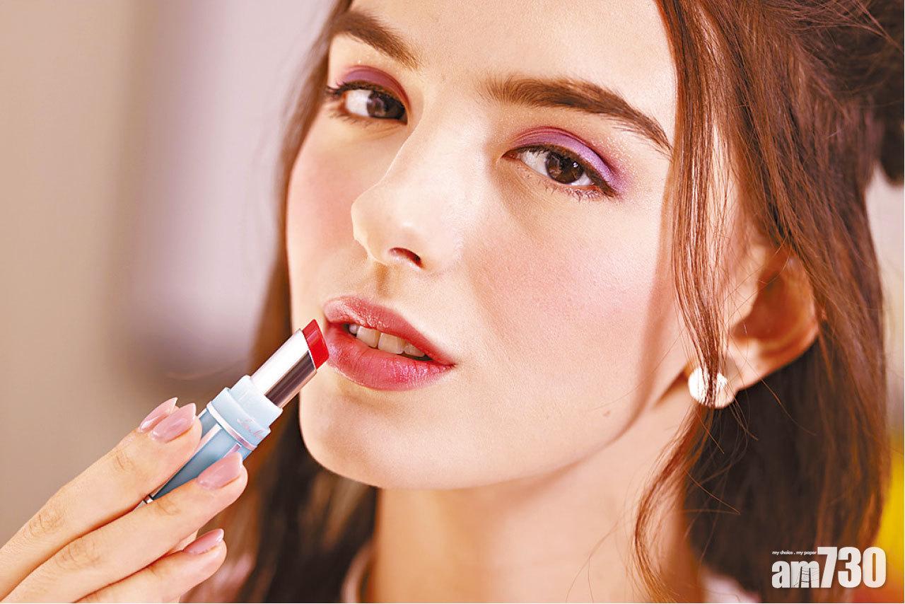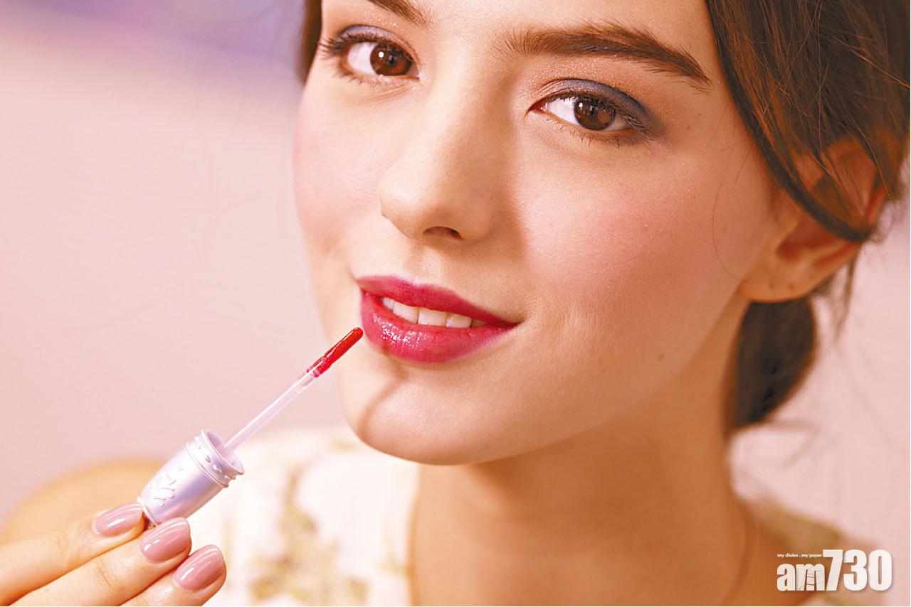Lip:光澤豐盈的珊湖色唇妝,於唇部中央薄薄塗上少許珠光粉紅唇蜜,呈現自然的豐唇盈效果。