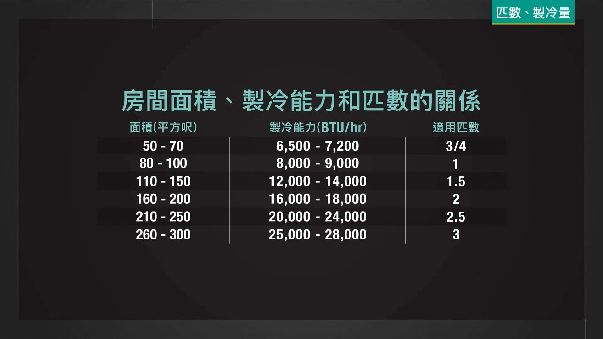 除了以上的三個要點,冷氣機匹數也要考慮。