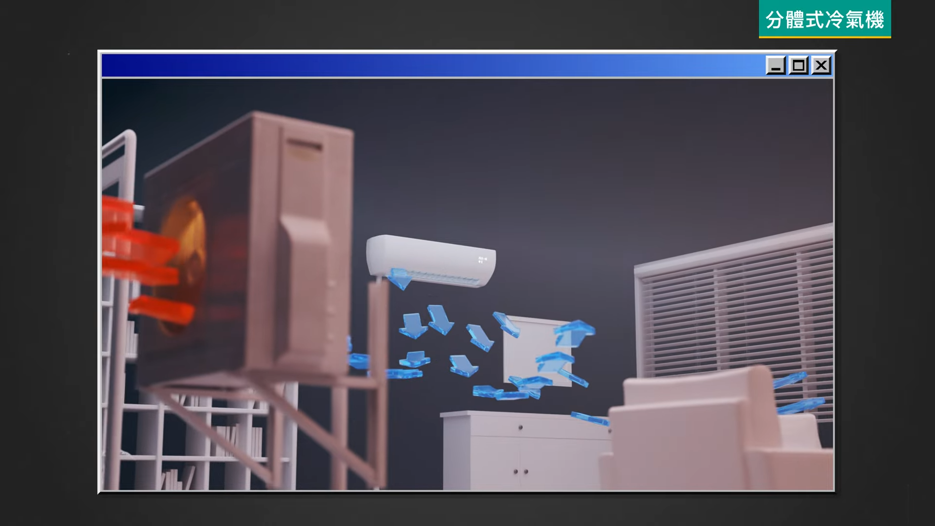 整體功能上和分體式冷氣機一樣,但其室外機體積會更小,近似放窗口式冷氣機的程度,所以能安裝在窗台上,避免搭掤的問題,減少開支。