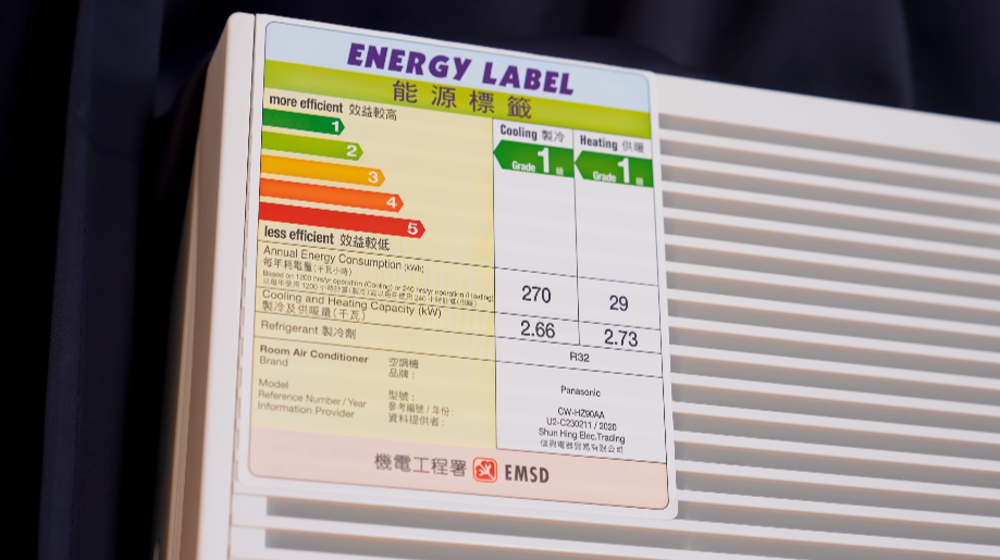 選擇冷氣機時,最清晰可見的絶對是能源效益標籤,它分為 1 至 5 級,其中 1 級最好。它的評級標準由「製冷季節性表現系數」CSPF 決定,這數值是估算冷氣機全年由室內排走的總熱量,以及這期間總耗電量的比率,用愈少的電獲得愈多的製冷量,其 CSPF 數值便會愈高。而獨立式及分體式冷氣機從 2021 年開始,CSPF 需達至 4.5 或以上才能獲得 1 級能源標籤。
