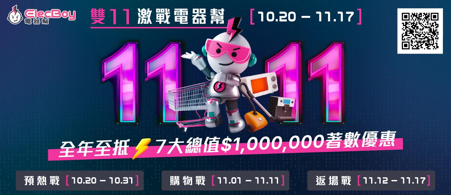 電器幫ElecBoy雙11購物節正式啟動,即日起至11月17日期間熱推「雙11激戰電器幫」,長達近1個月的推廣活動分為三大階段進行,送上總值$100萬著數優惠,分為「預熱戰」、「購物戰」及「返場戰」,提供多元化的豐富折扣、預售鎖定及支付優惠。