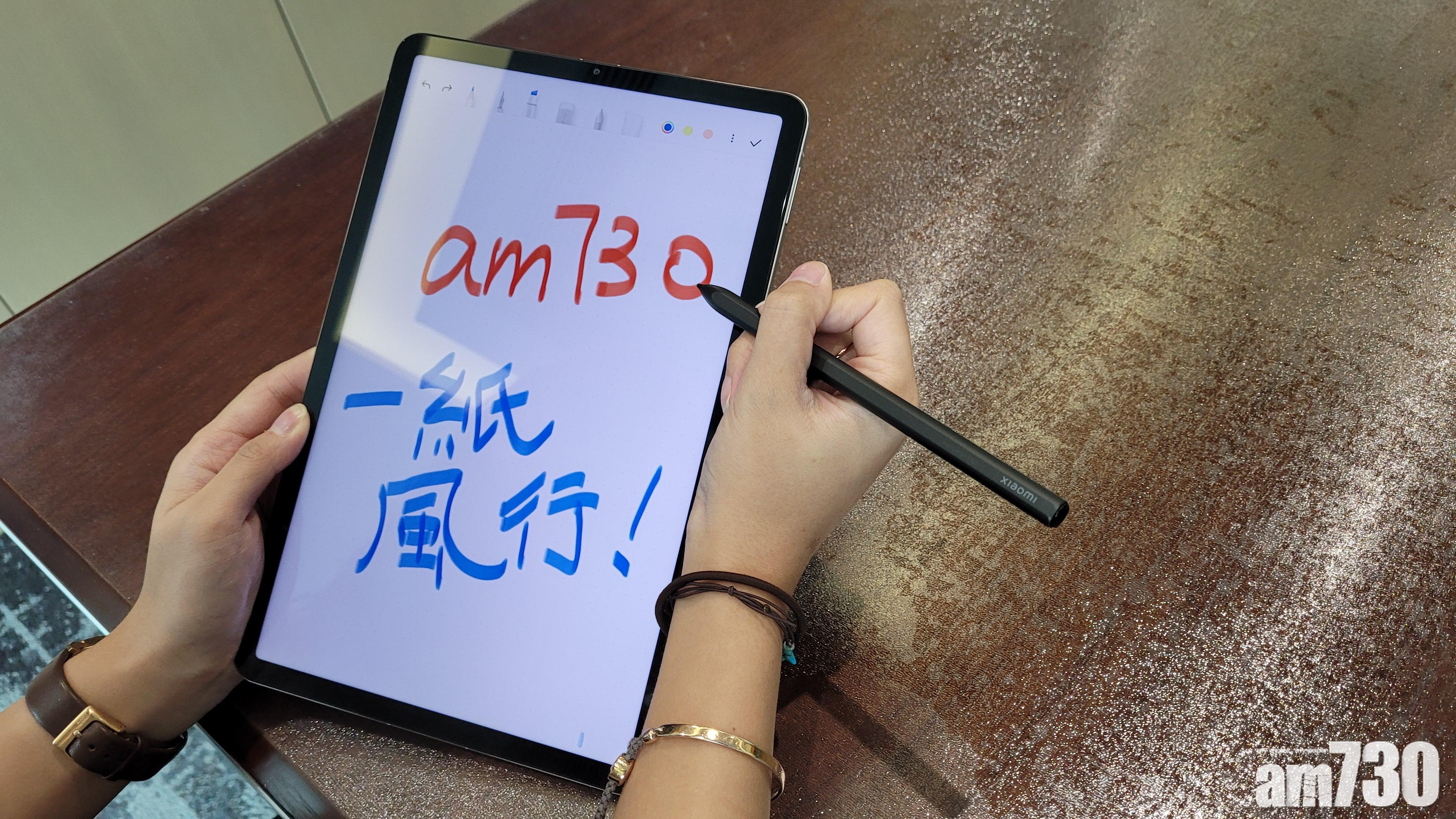 硬件方面,Xiaomi Pad 5搭載高通S860 5G處理器、可選6GB+128GB或6GB+256GB兩種儲存組合版本,內置8,720mAh大電池支援33W有線快充。平板另一賣點,就是可對應Smart Pen靈感觸控筆,具備4,096級壓感與240Hz觸控採樣率,採用軟性TPE筆頭模仿真實書寫感受;雙按鍵設計讓觸控筆快速進入筆記應用程式及進行擷圖。小編實際書寫,雙按鍵分別對應更換筆刷和換色,長按可啟動擦膠功能,操控跟其他觸控筆無異,而且寫字反應快,粗幼筆觸亦能忠實反映力度,唔錯。不得不提,平板可容許觸控筆磁吸於右側懸掛和充電。如果想充電的話,只要將觸控筆的筆尖向上吸附,平板即彈出充電顯示。官方指磁吸充電僅需18分鐘即可充滿,支援連續書寫逾8小時。