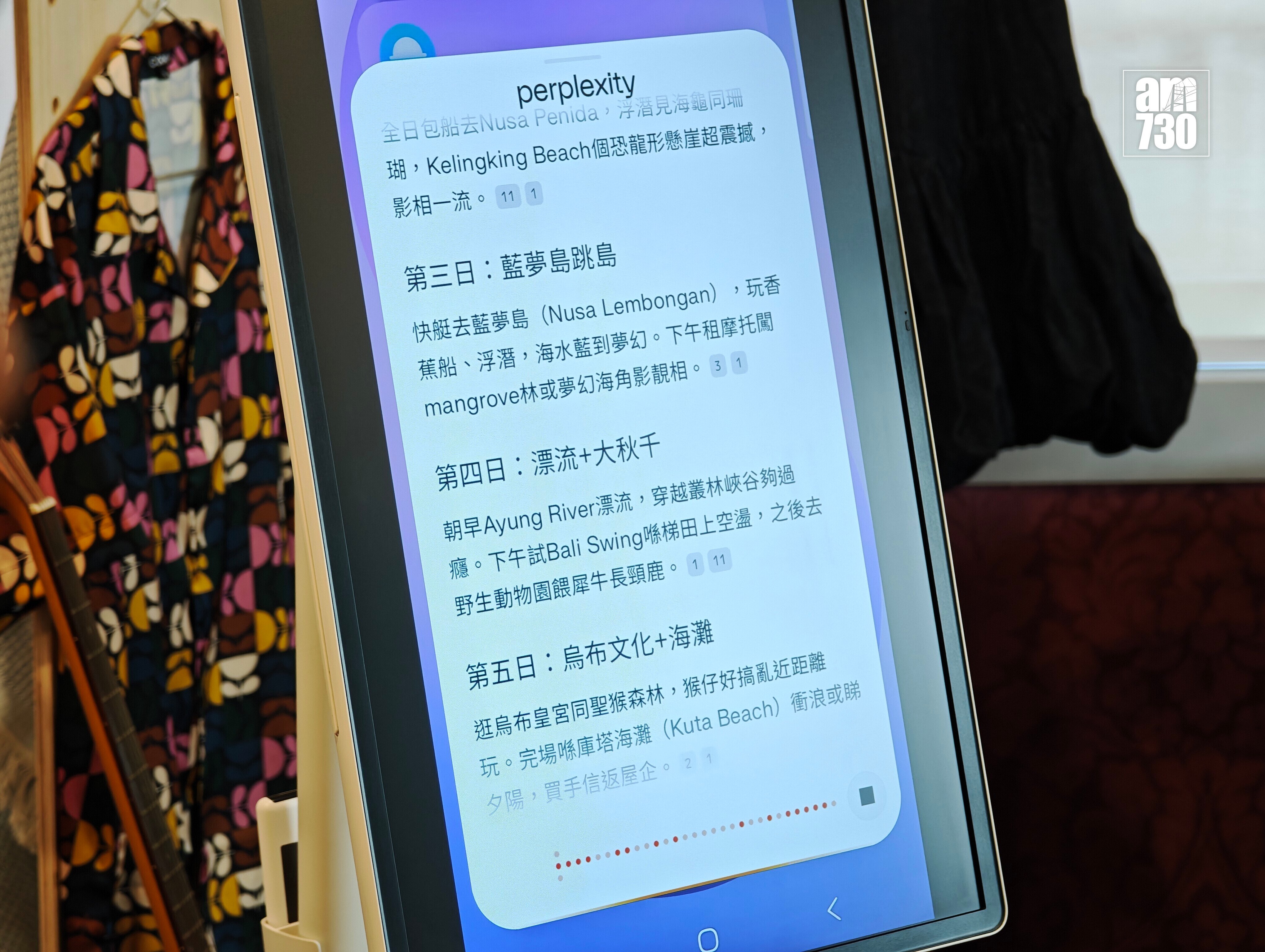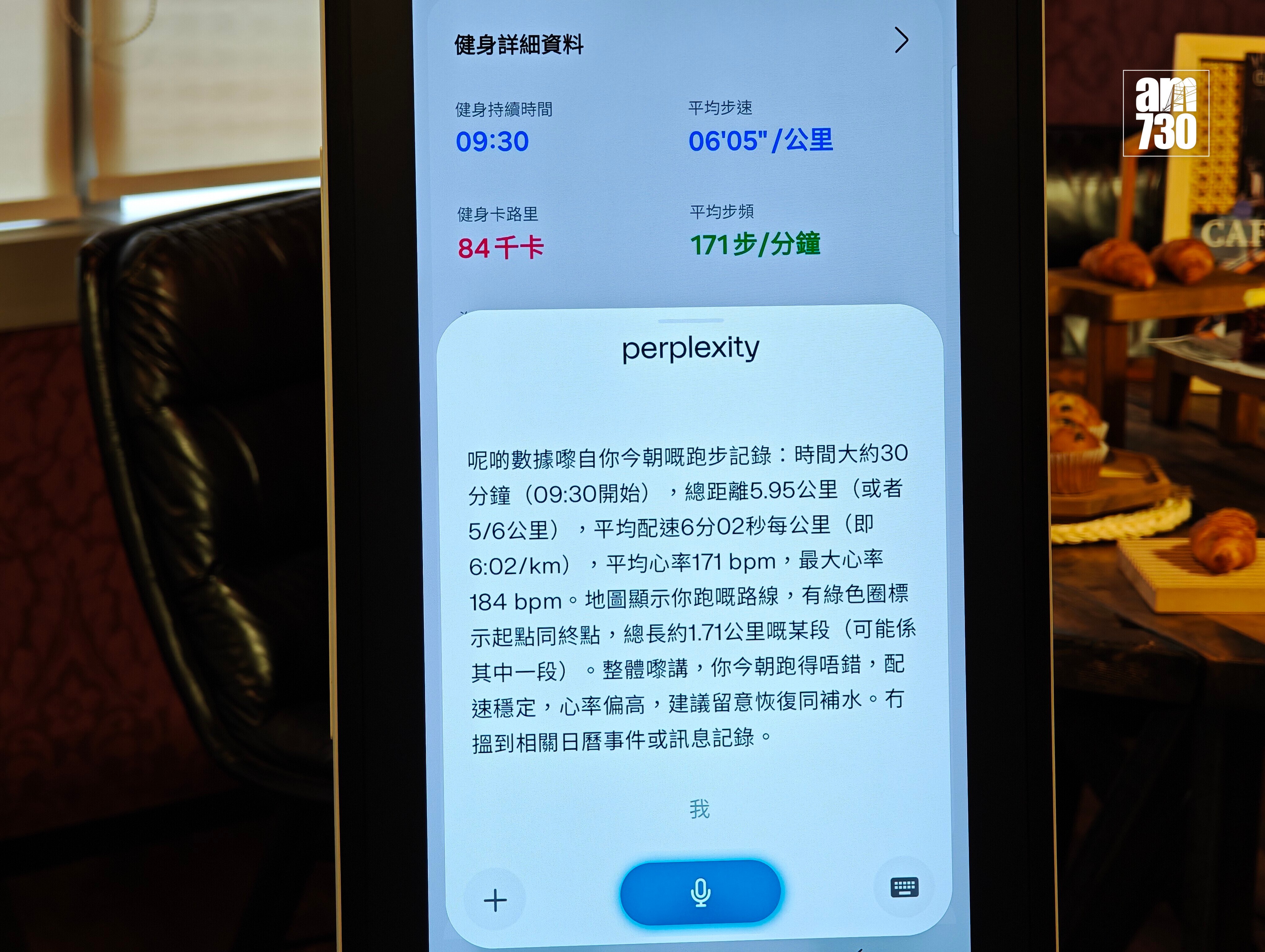 Galaxy AI向來智能好用,今次更以Agentic AI為核心。一句語音指令「Hey Plex」即可呼喚AI助理,並且支援廣東話,不過實試有幾次突然「轉Channel」變回普通話,需要時間訓練。AI可進行跨應用指令,例如可將查詢加入行事曆。