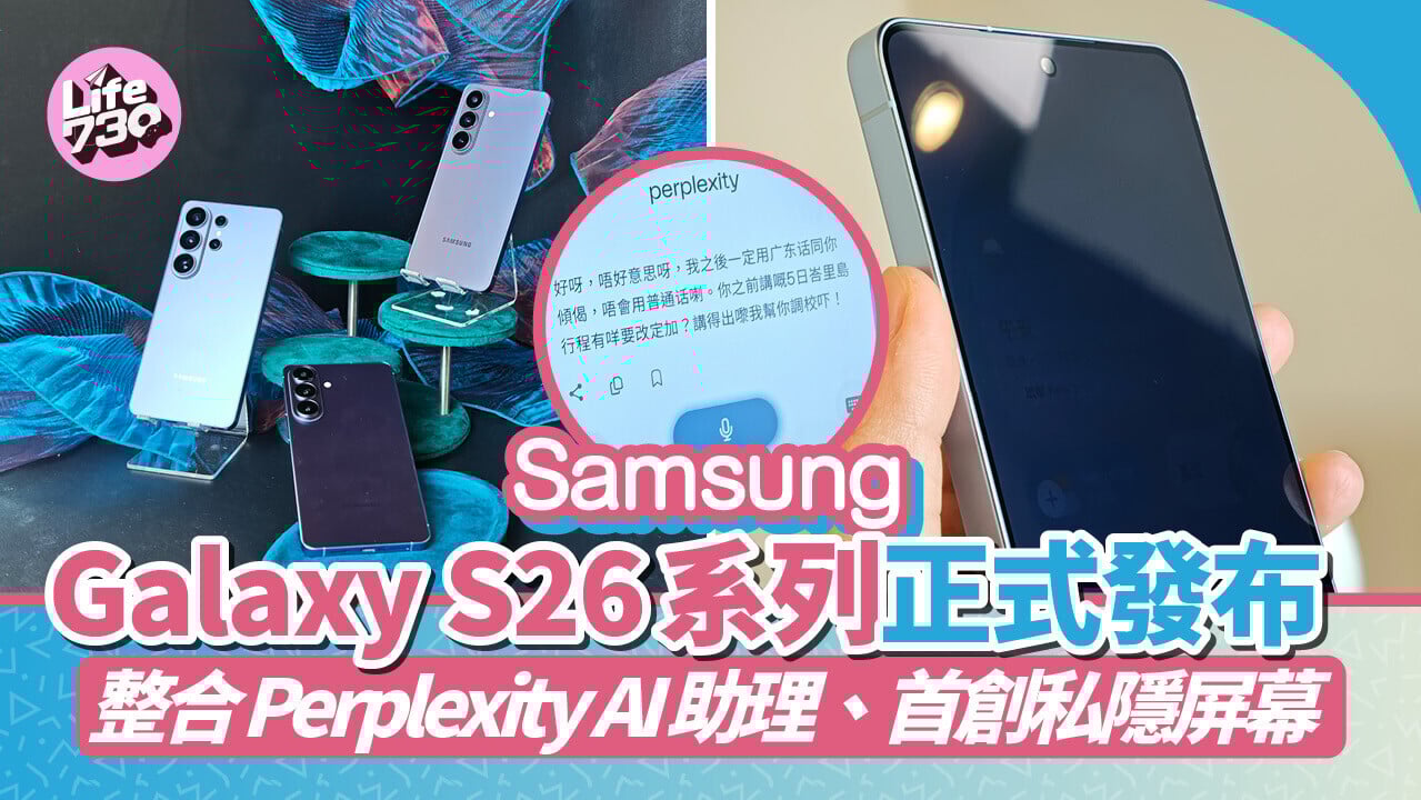 Samsung Galaxy S26系列正式發布,主打「最簡單易用的AI手機」,提供S26、S26+及S26 Ultra 3款配置,當中3大亮點包括One UI 8.5深度整合Perplexity AI、全球唯一內置私隱屏幕、以及提升拍攝和創作性能,是時候換手機!