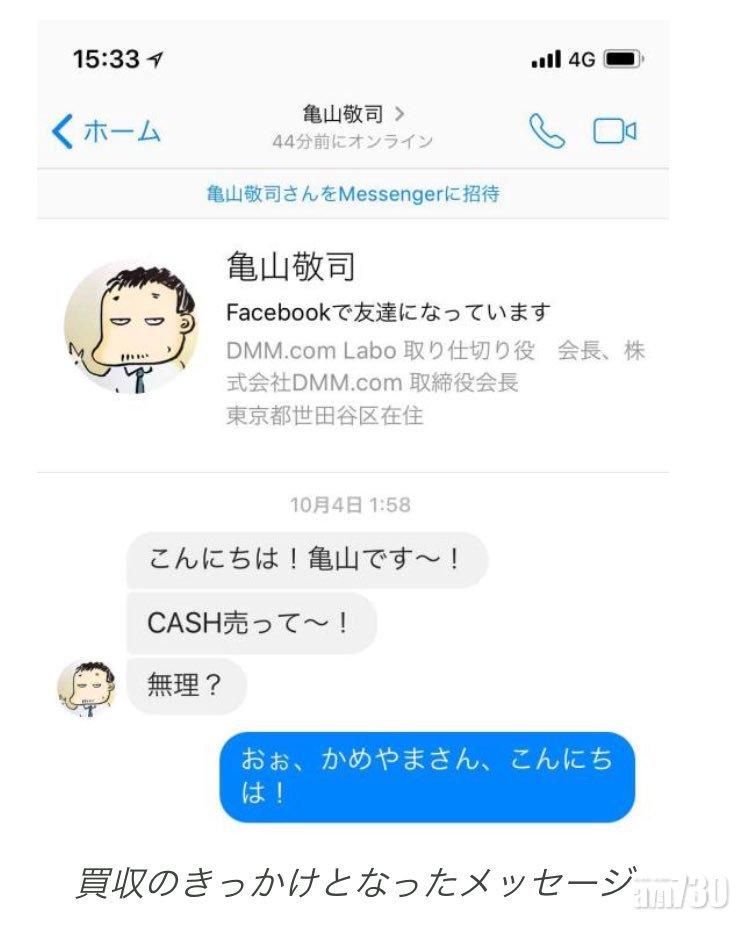 DMM以Facebook Messenger向CASH提出收購,在日本成為話題。