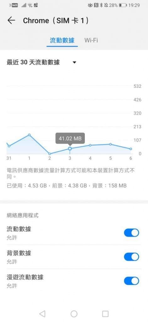 首先在設定中可以查詢的該月的各APP的數據使用量,其後可根據實際的情況作調整!