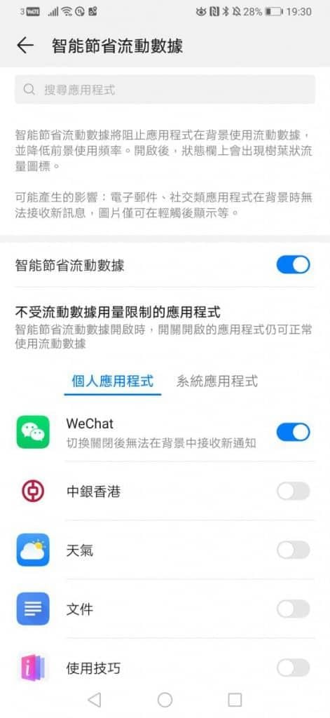 當然部份App的背景數據是沒有特別大的用途,用戶可自行選擇關閉,不過這部份就要用戶自行判斷了。而個人化設定除了可節省數據外,更可以節電。