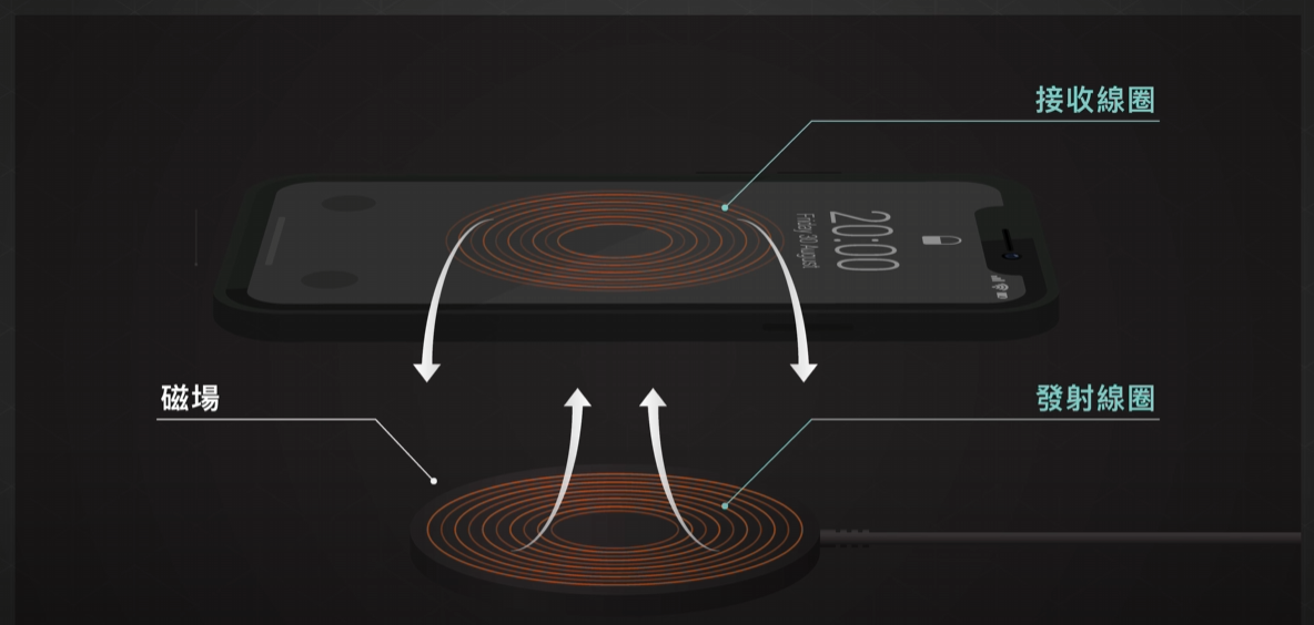 無線充電的運作原理其實是透過電磁感應。當充電底座連接到電源時,內部的線圈會發射訊號給裝置的接收線圈,從而生成磁場並使電力開始流動。這項技術有一個專有名稱,叫做 Qi(正確讀音為「氣」的普通話發音)。