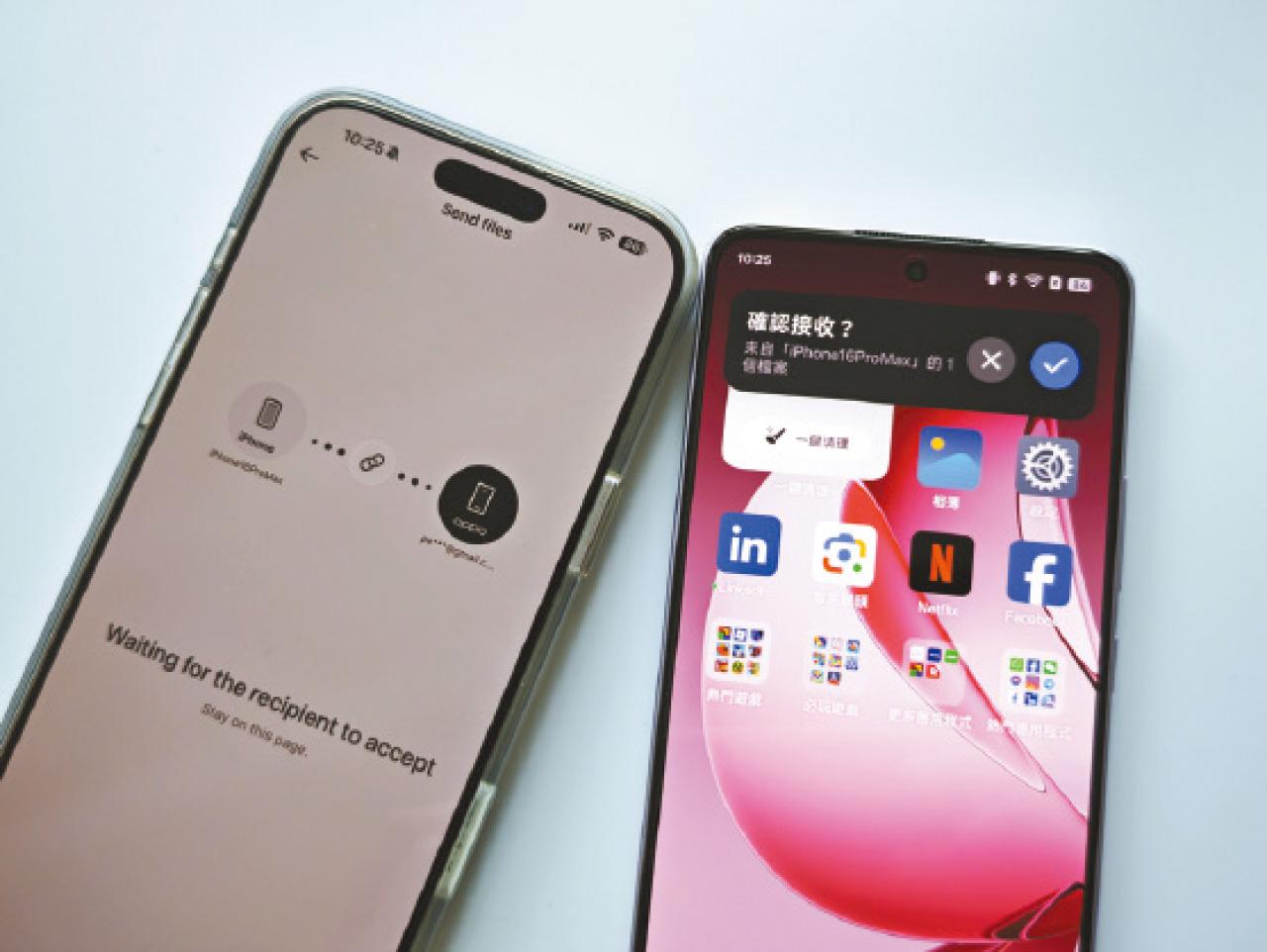iPhone互傳透過應用程式或NFC一鍵傳檔。
