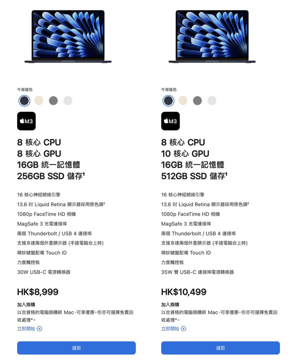 另外M3晶片版MacBook 13跟15的8+512版亦同樣升級至16+512,而原先16+512就變成24+512配置,相比下仍以中間配置有較佳性價比。