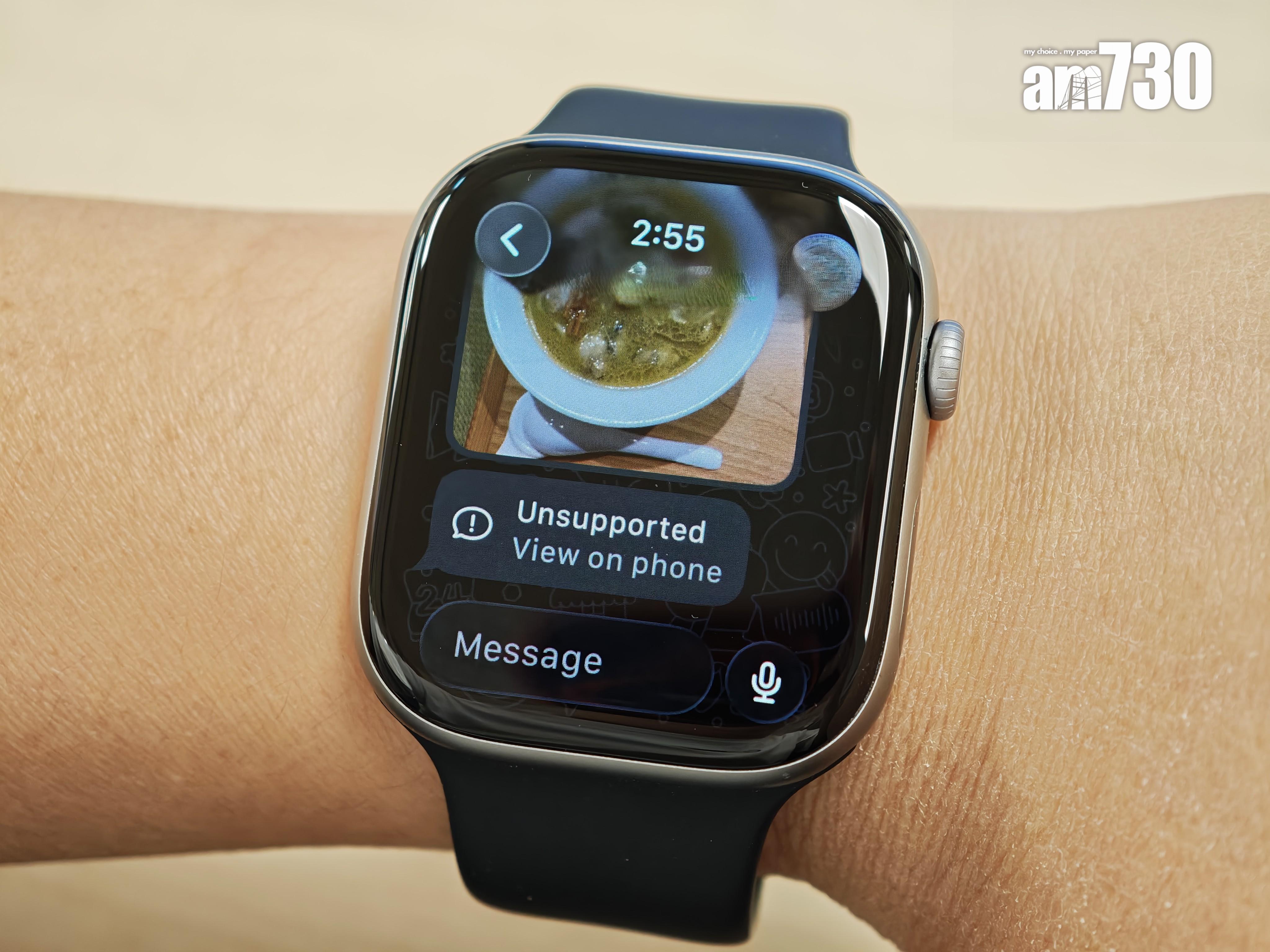 Apple Watch亦可以收聽對方傳送的錄音,同時能收到的訊息快速傳送emoji回應。另外如果對方傳送圖片和貼圖,亦可以在Apple Watch上看到,效果亦清晰,不過影片暫時不支援。