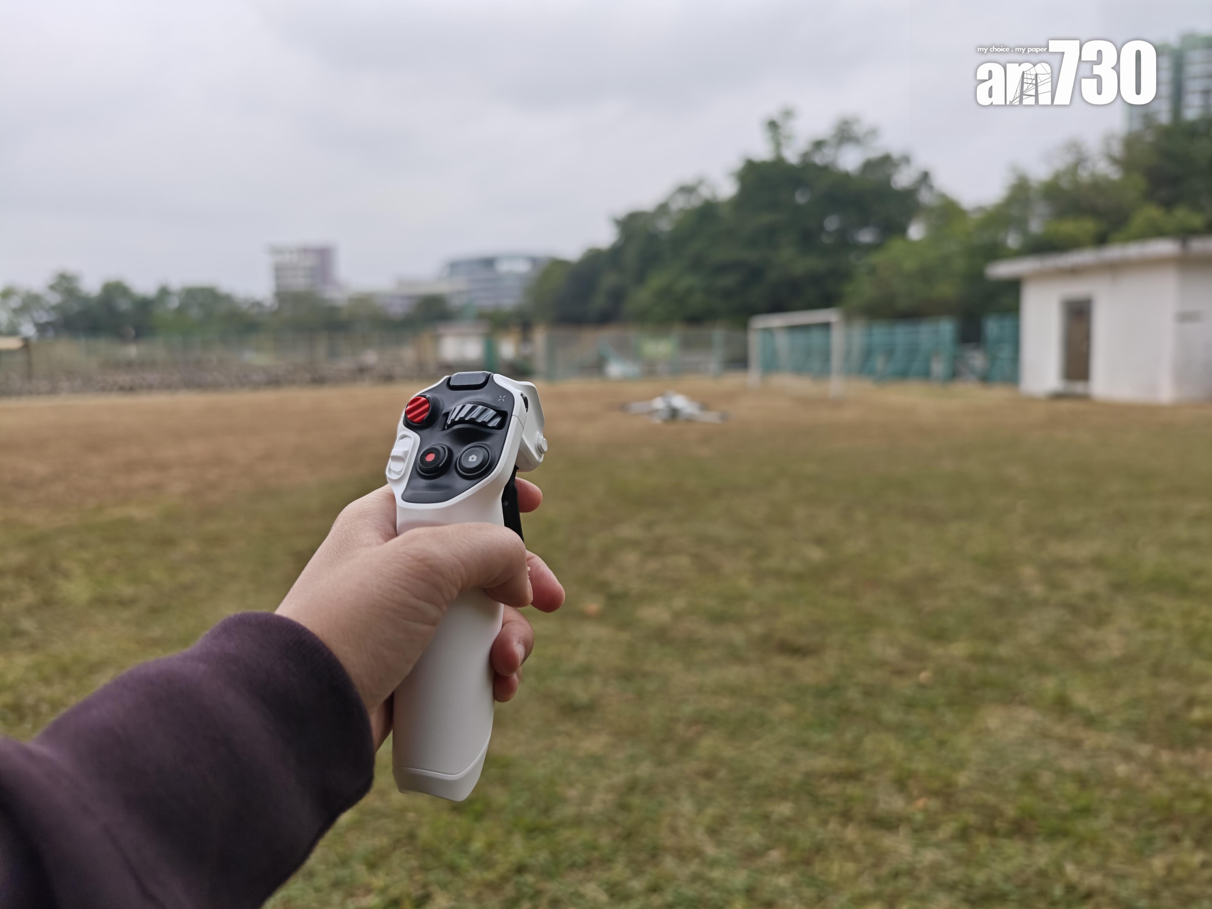 作為航拍新手,實試操控Antigravity A1比想像中更加簡單,全球首創的操控模式FreeMotion,只需使用體感遙控手柄指向方向,航拍就能跟著眼鏡內所見的準星飛翔,控制就如雷射槍般,左右轉動遙控器即可轉彎,扣動扳機加速,而且有自動返航、水平障礙物避障及自動剎低等輔助功能,簡單如打機般,即使第一次飛都能輕易上手。