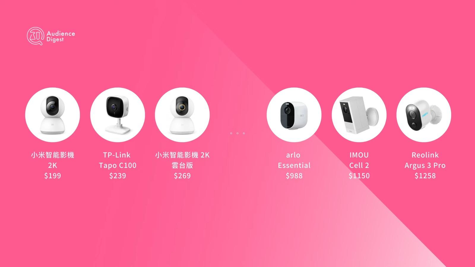 AD研究所今次做咗個大型IP Cam橫評,測試目的係幫大家喺香港揀啱家用嘅網路攝像頭。主要針對屋企有工人姐姐或者老人家嘅情況,睇下邊隻IP Cam最啱用。佢哋總共測試咗22款唔同牌子嘅IP Cam,包括EZVIZ、TP-Link、小米等等,價錢由幾百蚊到千幾蚊不等。評測嘅重點包括畫面嘅廣角、解像度、室內同埋夜間嘅拍攝效果、收音、雙向通話嘅延遲,仲有手機App嘅支援程度等等。