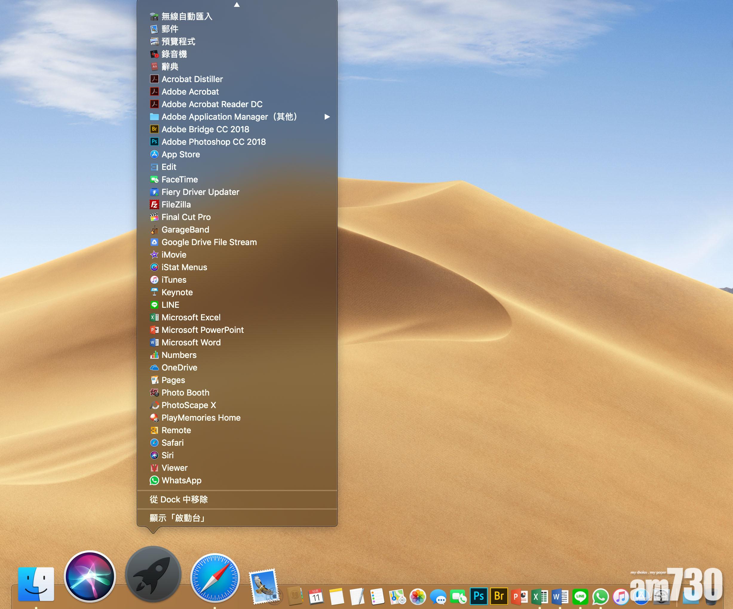 升級至Mojave後,將Launchpad放在Dock上,長按圖示就可以叫出程式清單。