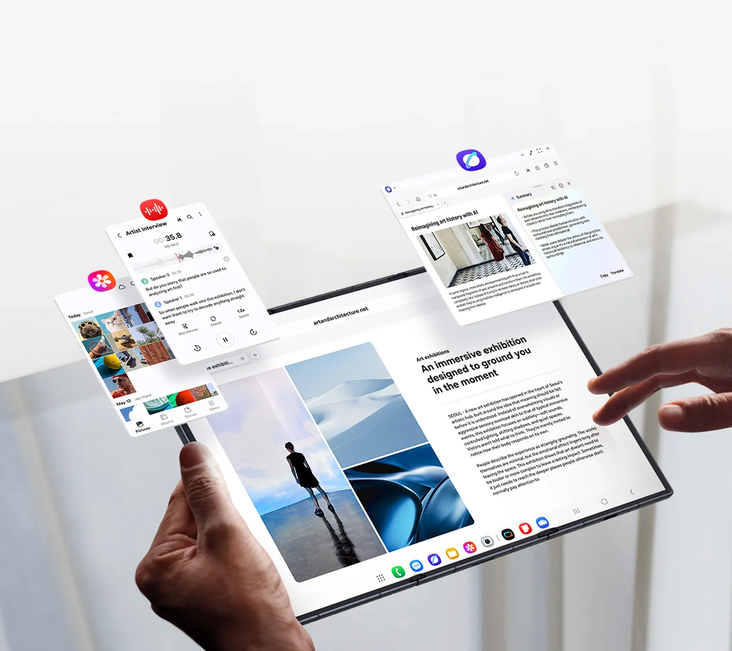 Galaxy Z TriFold是首款可獨立運作Samsung DeX的手機,升級版工作模式最多可建立4個工作區,而每一個工作區,最多可同時執行5個應用程式,可當作平板電腦般使用。透過延伸模式外接第二螢幕,並可在雙螢幕之間自由拖放應用程式,或靈活切換螢幕執行工作,還能外接藍牙滑鼠和鍵盤。