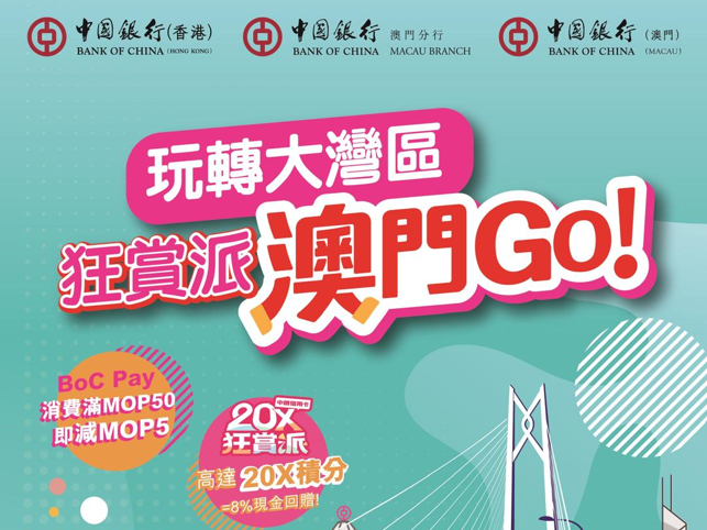 中國銀行宣布,與澳門中銀攜手推出「玩轉大灣區 — 狂賞派 澳門 GO!香港 GO!」全年跨境消費優惠,優惠涵蓋超過1,000 家港澳商戶。