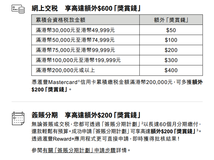交稅優惠2024|滙豐信用卡交稅優惠及方法:
